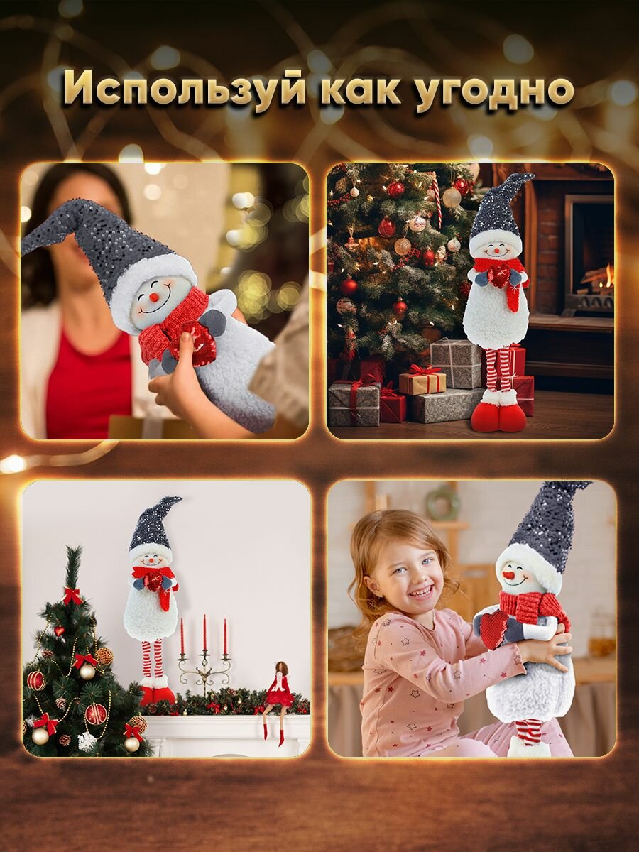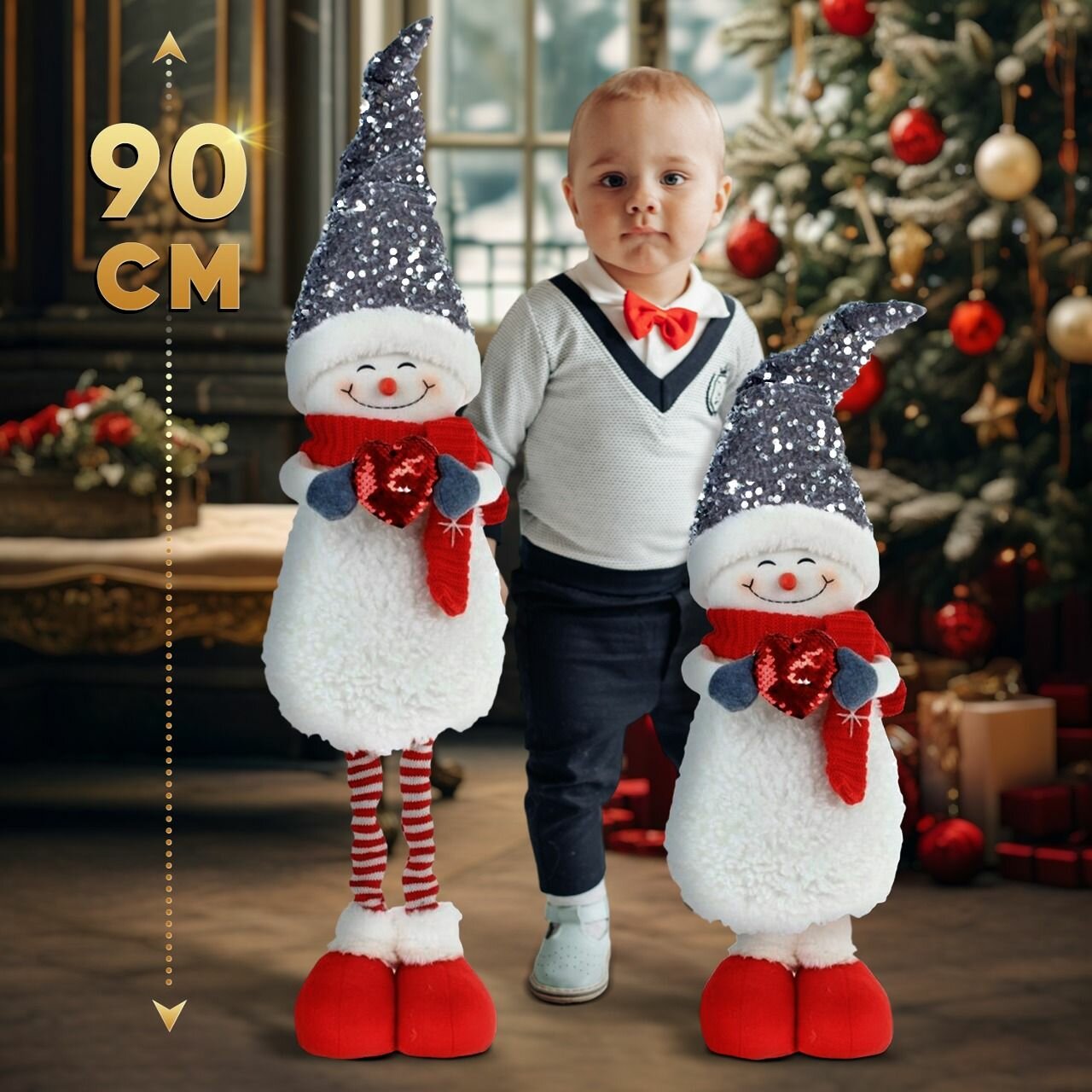 Отзывы на Снеговик под елку на телескопических ножках большой новогодний, раздвижная до 90 см игрушка, фигурка сувенир статуэтка, Серебряный