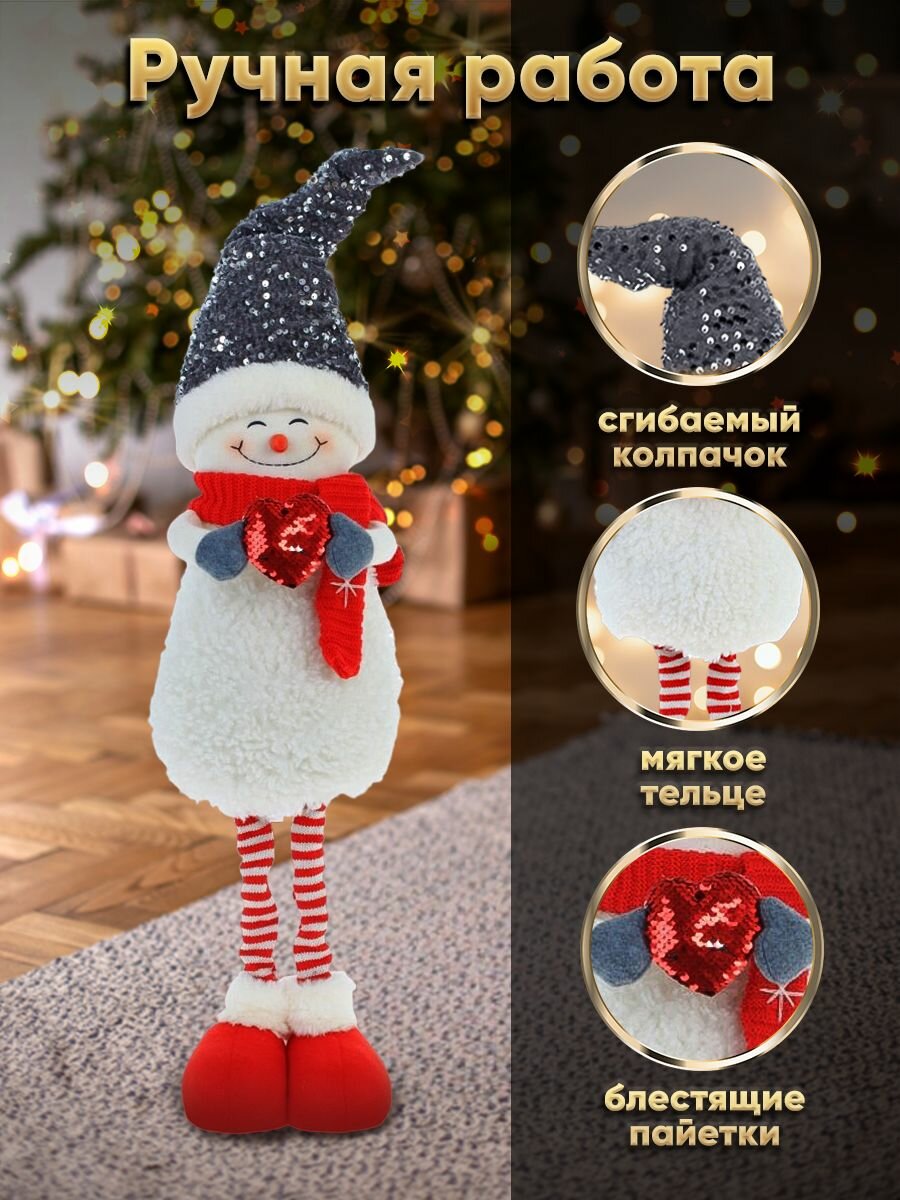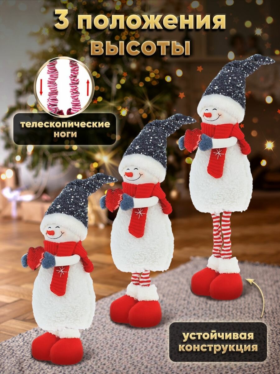 Снеговик под елку на телескопических ножках большой новогодний, раздвижная до 90 см игрушка, фигурка сувенир статуэтка, Серебряный информация: