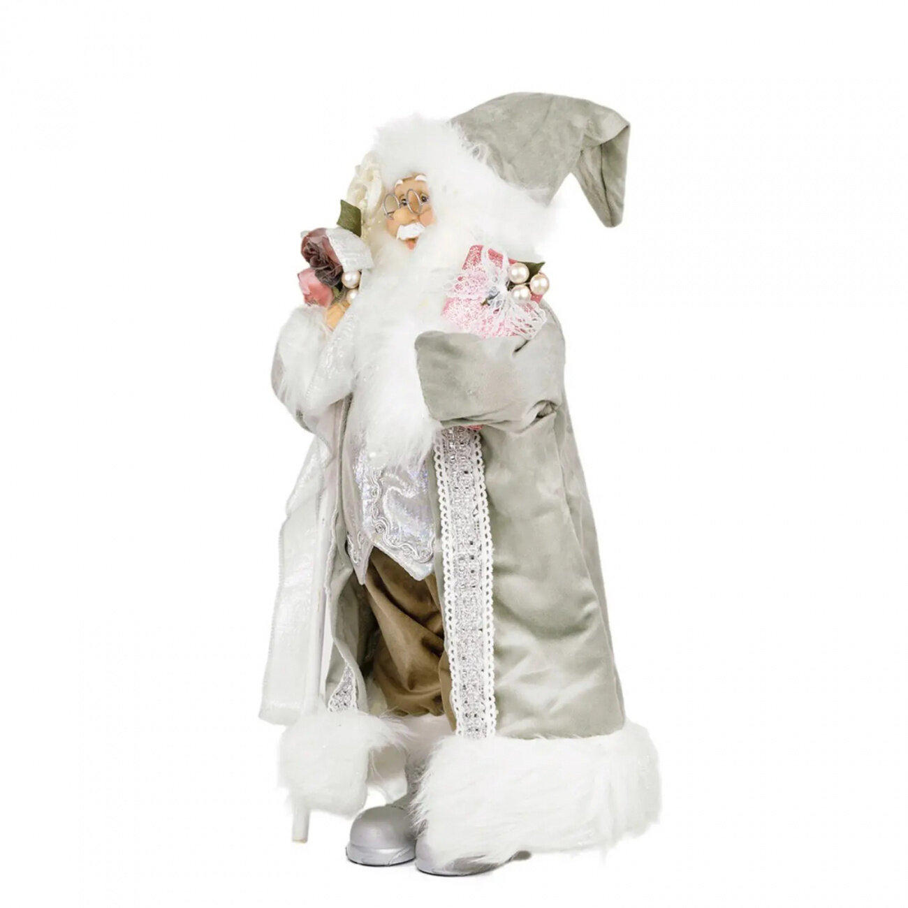 Дед Мороз MAXITOYS в длинной серой шубе с подарком и посохом 45см MT-102309-45 информация: