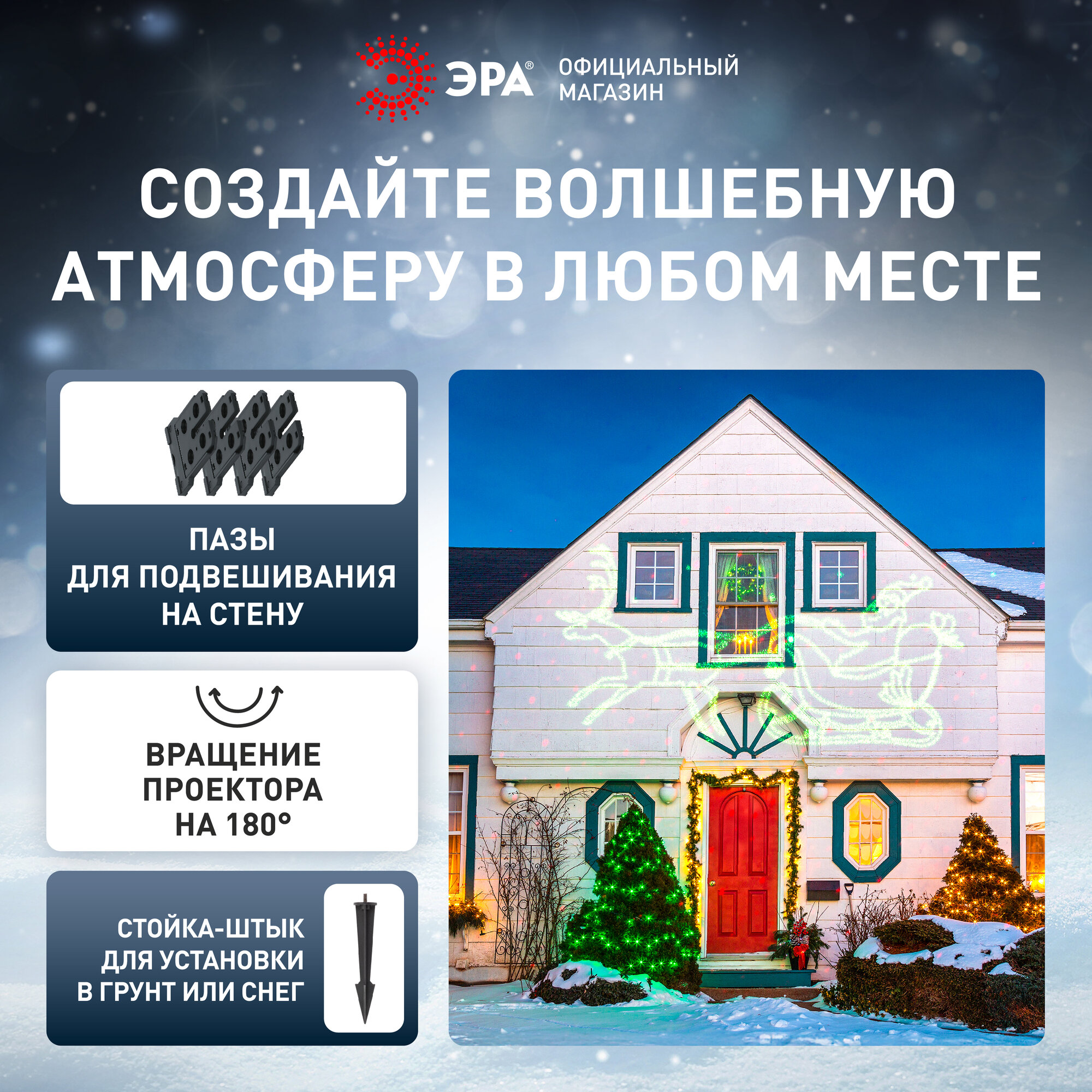 Отзывы на Проектор новогодний уличный лазерный ENIOP-02 ЭРА Дед Мороз мультирежим 2 цвета IP44, 220В