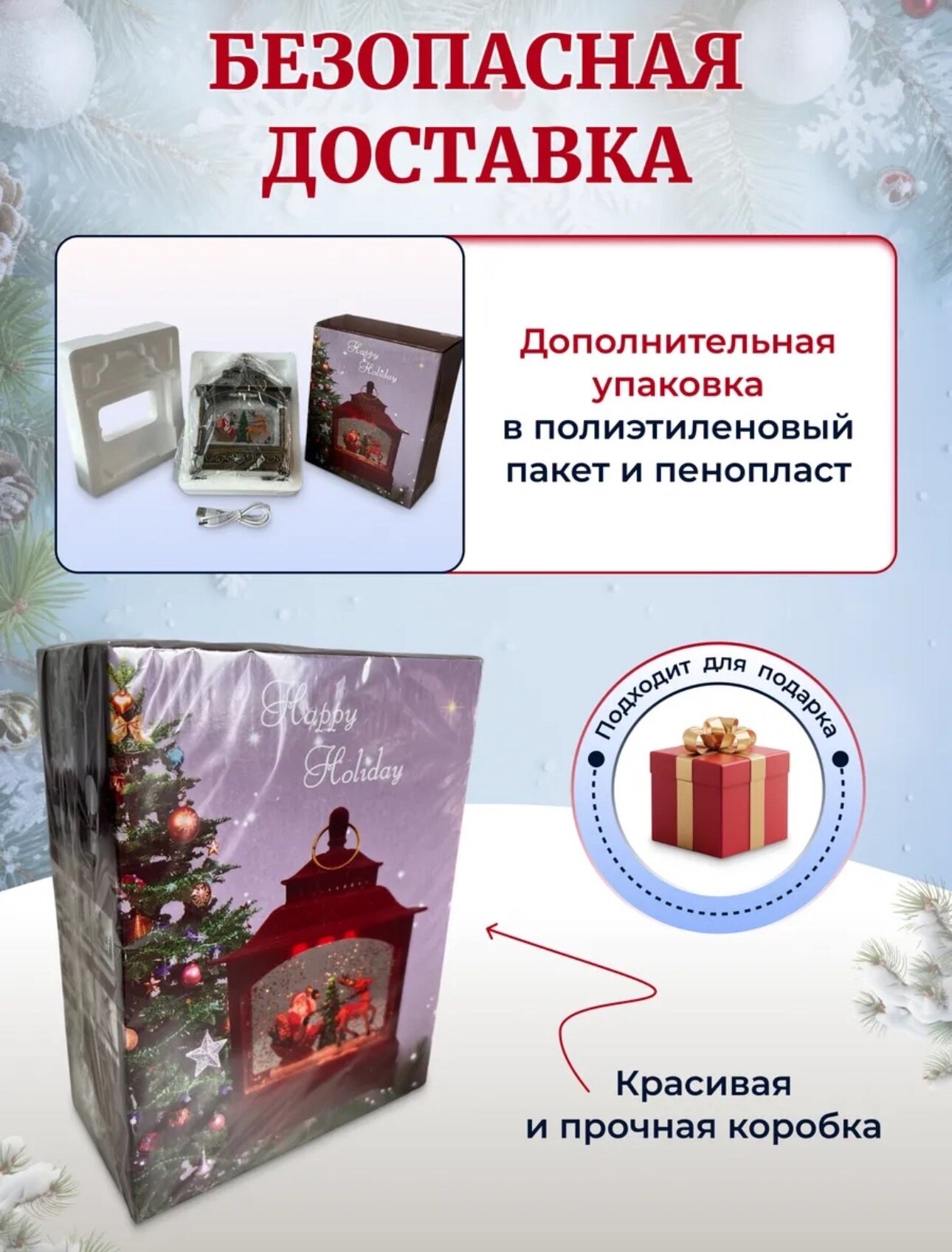 Новогодний фонарь-светильник Kosmo.store "Снеговик", музыкальный, со снегом информация: