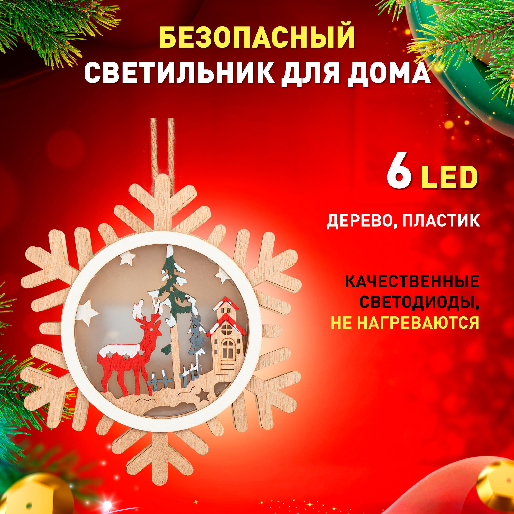 Светильник ЭРА ENGDS-6L новогодний светодиодный Снежинка подвесной 15 см 2*АAА информация:
