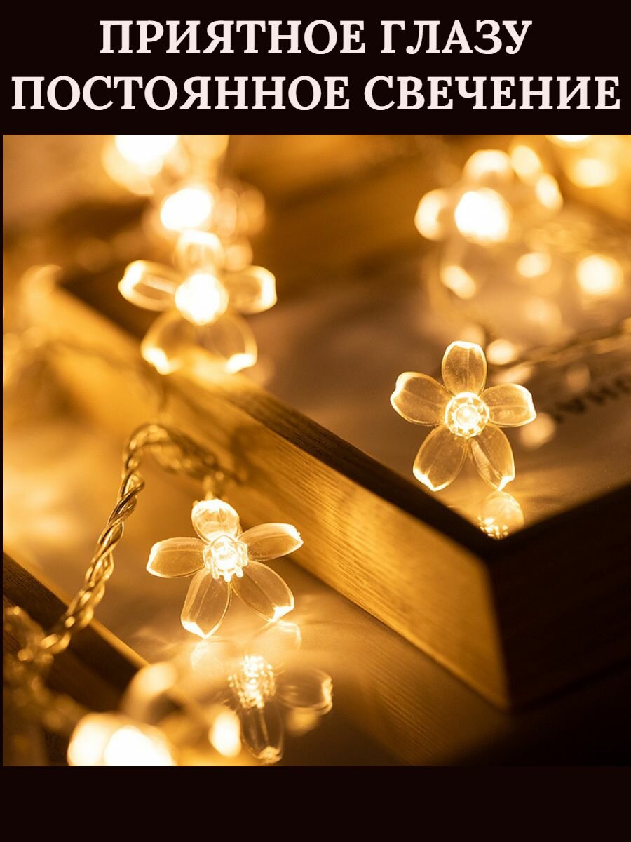 10 цен на Гирлянда от USB "Цветочки", 6 метров , 40 светодиодов, теплый цвет,