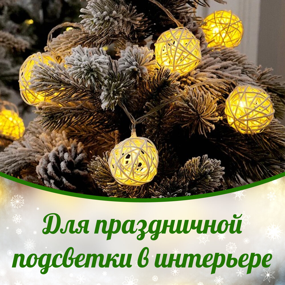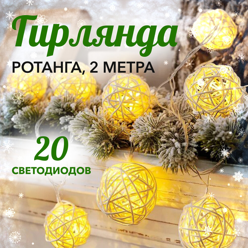 Светодиодная новогодняя гирлянда "Ротанга", на батарейках, на окно, нить, для праздника, для фотосессий, украшения, декора информация: