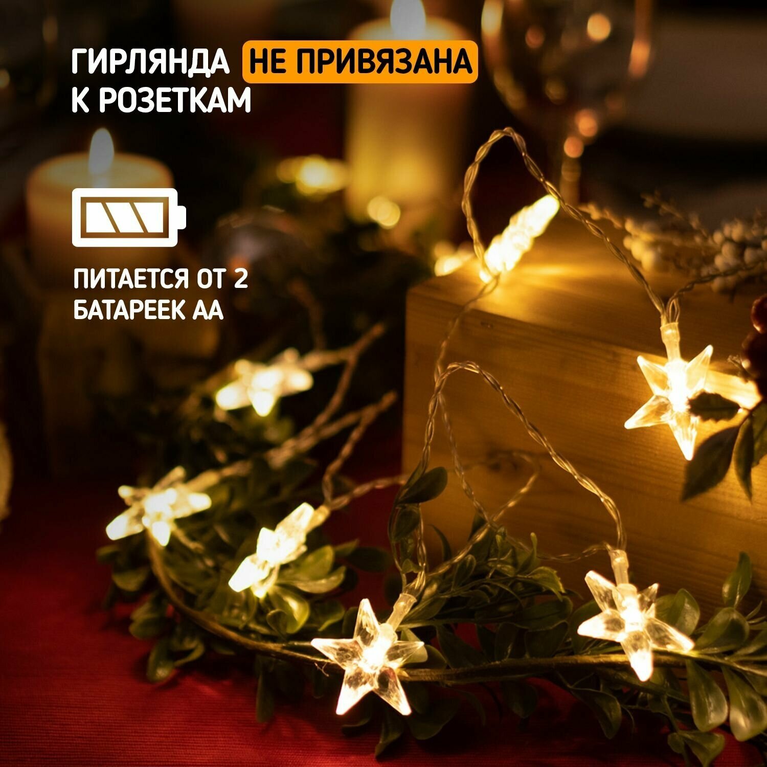 Отзывы на Светодиодная гирлянда "Звездочки" Neon-Night на батарейках 1.5 м, теплое белое свечение