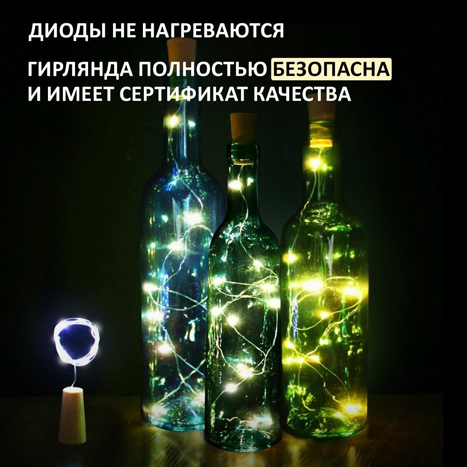 Отзывы на Светодиодная гирлянда "Роса" Neon-Night с пробкой 2 м для декорирования бутылок, теплое белое свечение/ новогодние гирлянды / новогодние подарки