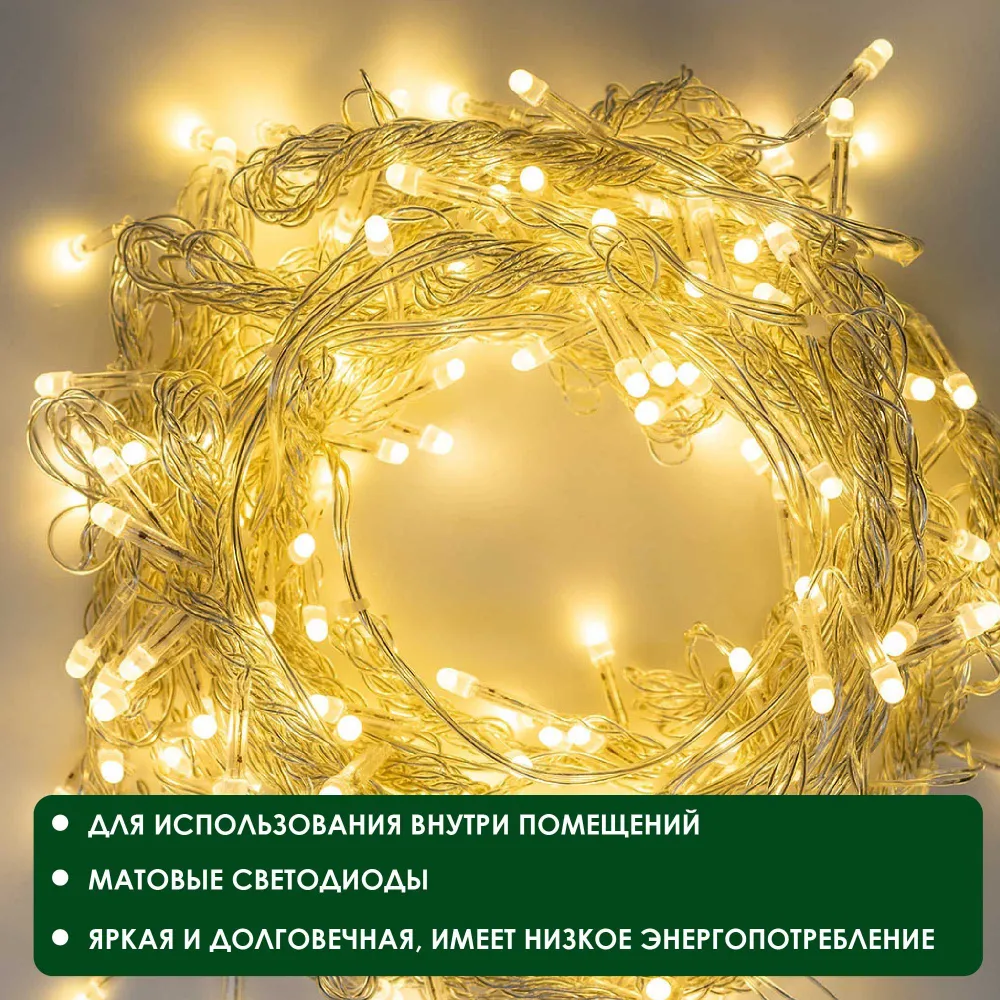 Гирлянда «Нить» 7 м, IP20, тёмная нить, 180 ламп, свечение тёплое белое, 8 режимов, 220 В, 187157
