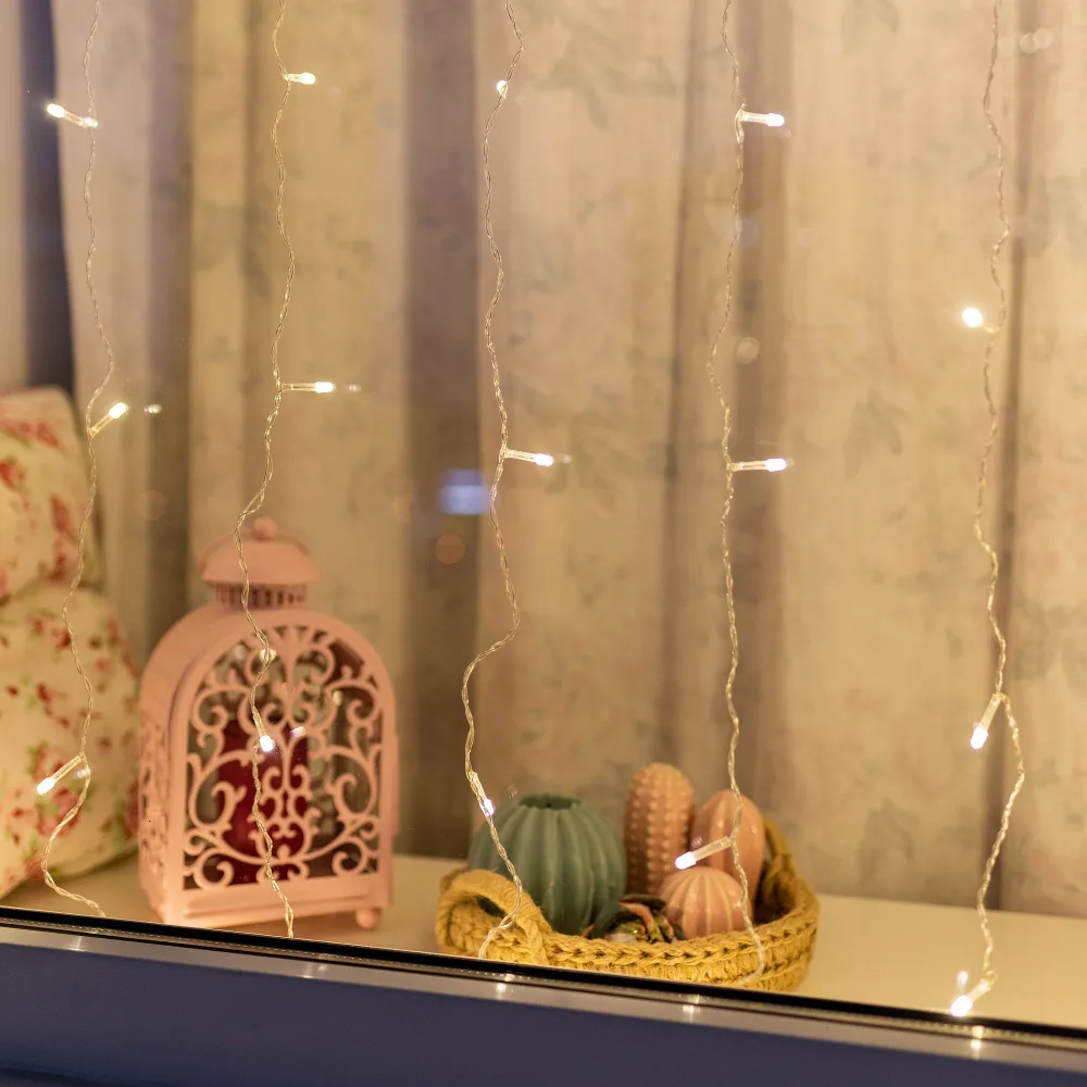 Гирлянда уличная Бахрома 50м / Гирлянда светодиодная, питание от сети 220В, черный провод, белый свет