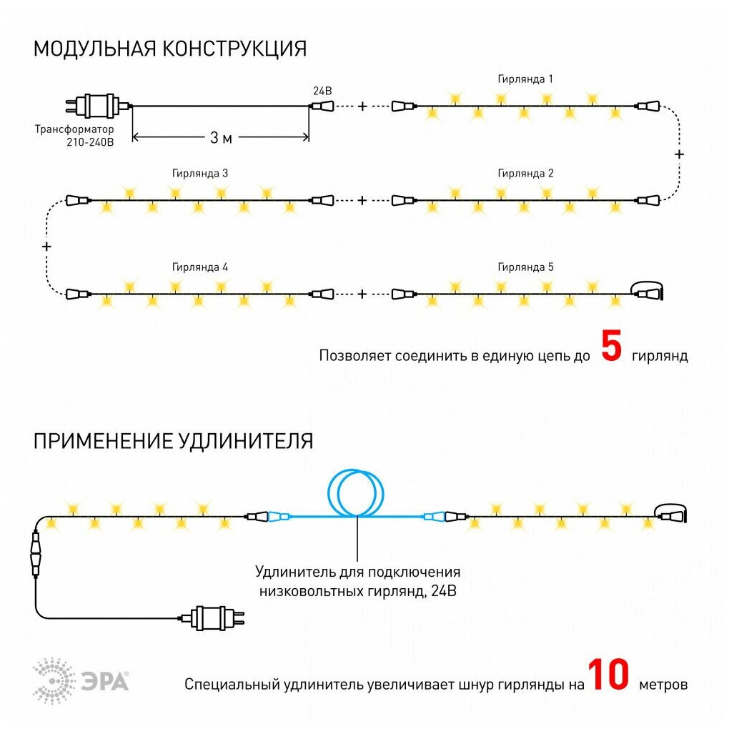 Гирлянда новогодняя светодиодная нить мишура ENON-10B ЭРА для улицы и дома, теплый свет 10 м, 96 LED информация: