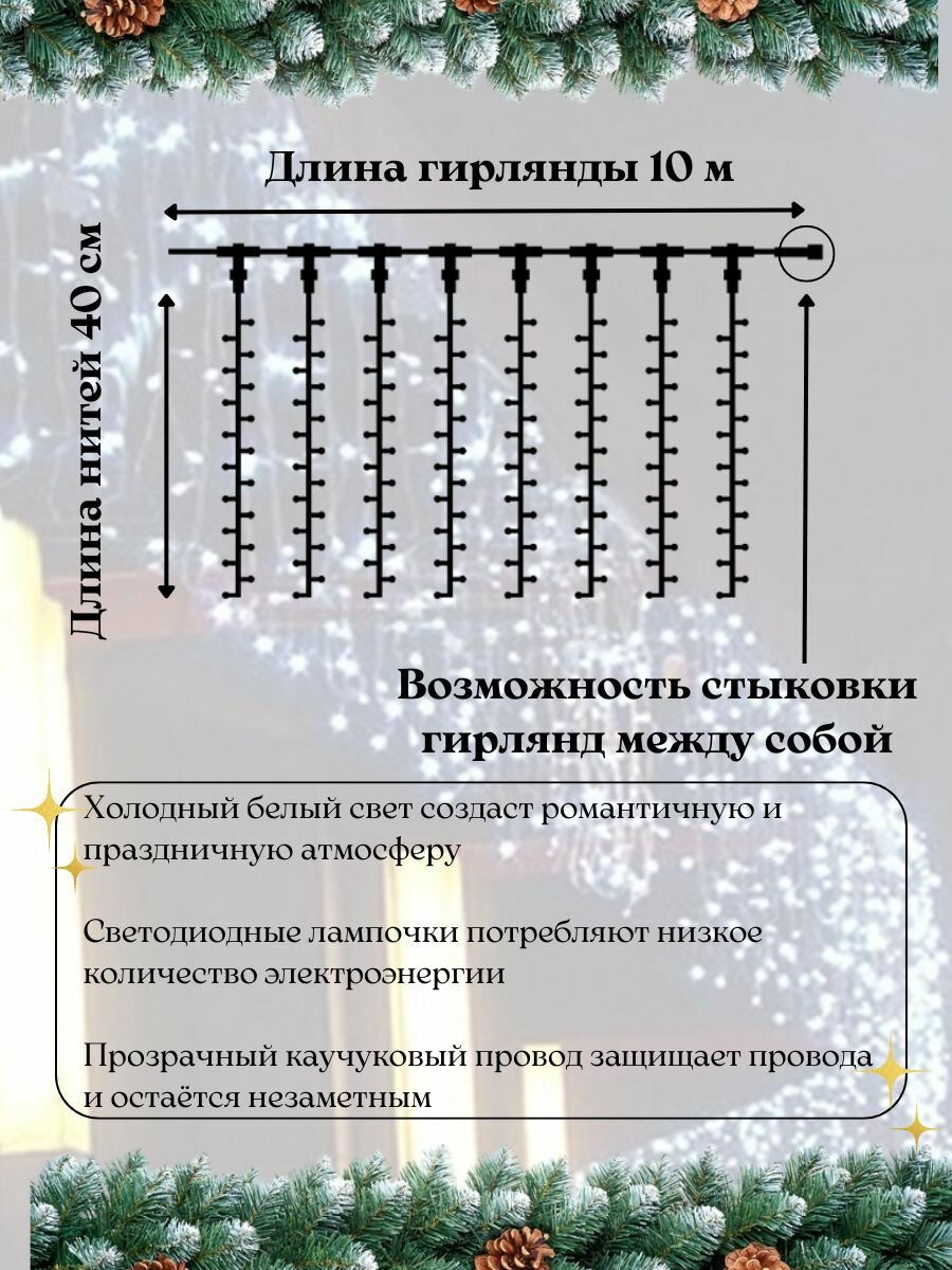 Гирлянда уличная светодиодная бахрома белого свечения на дом 10м информация: