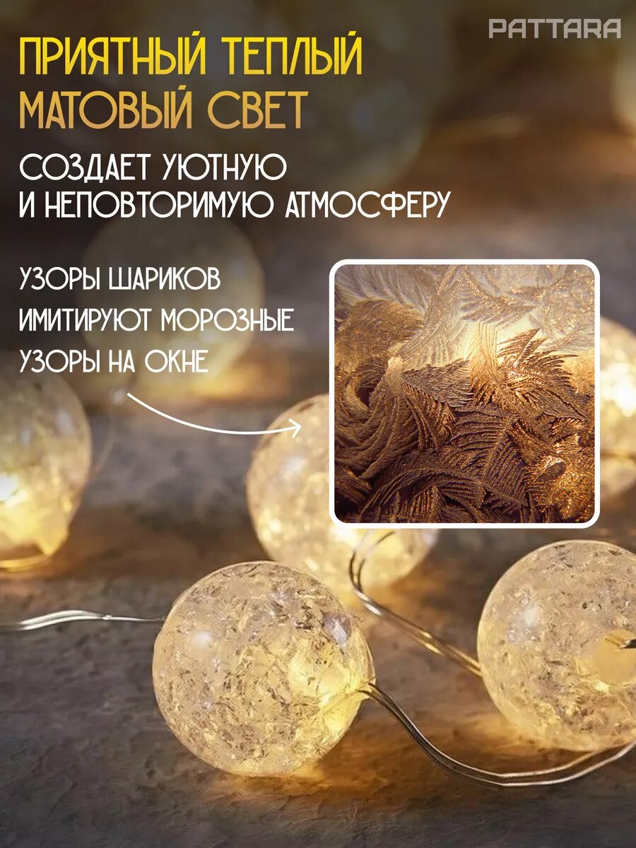 Гирлянда на батарейках Шарики 5 метров 50 шариков для дома на елку новогодняя светодиодная информация: