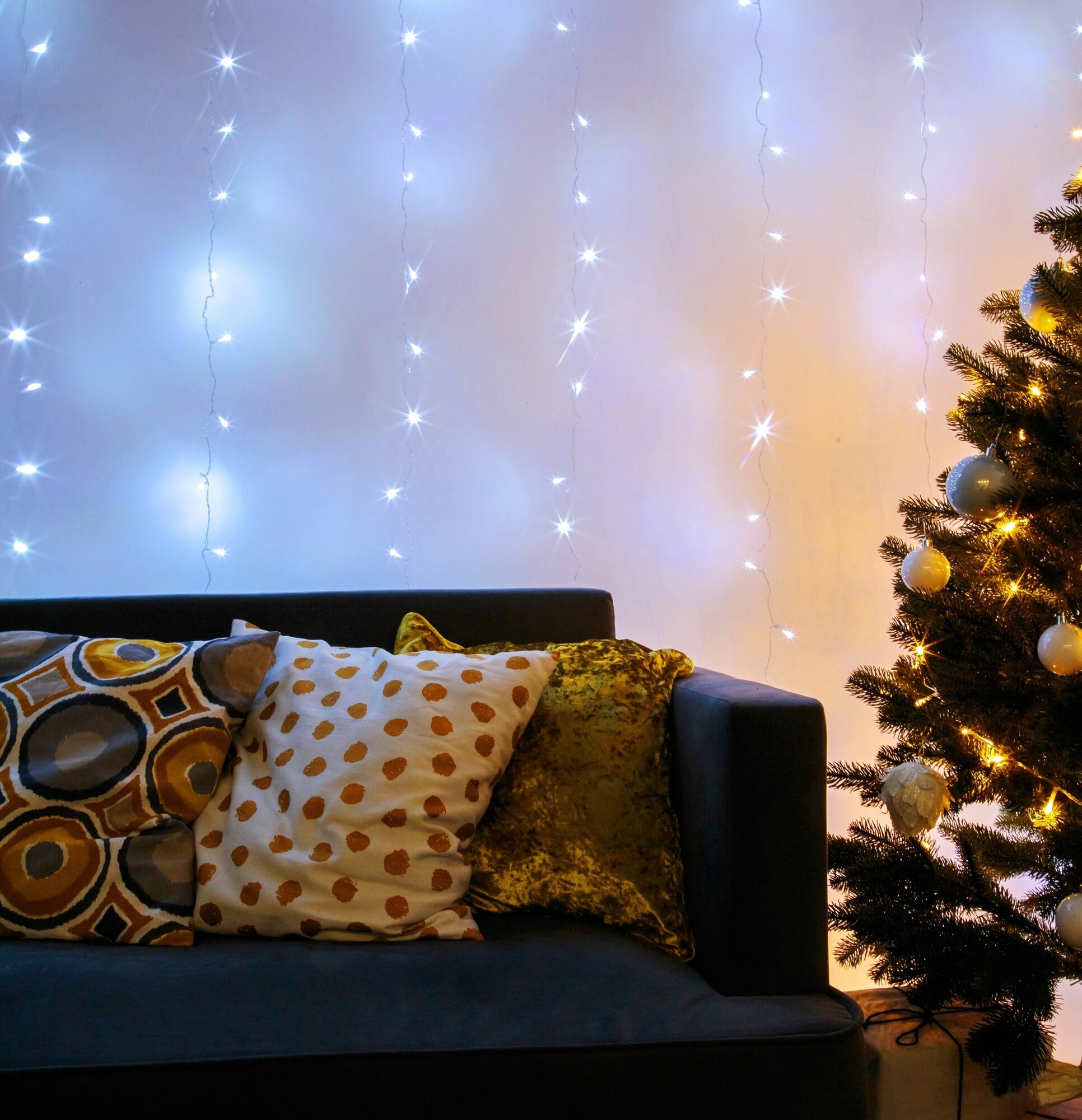 10 цен на Гирлянда штора новогодняя светодиодная , белый свет , 300 ламп, 3х3 метра, с пультом , от сети 220Вт
