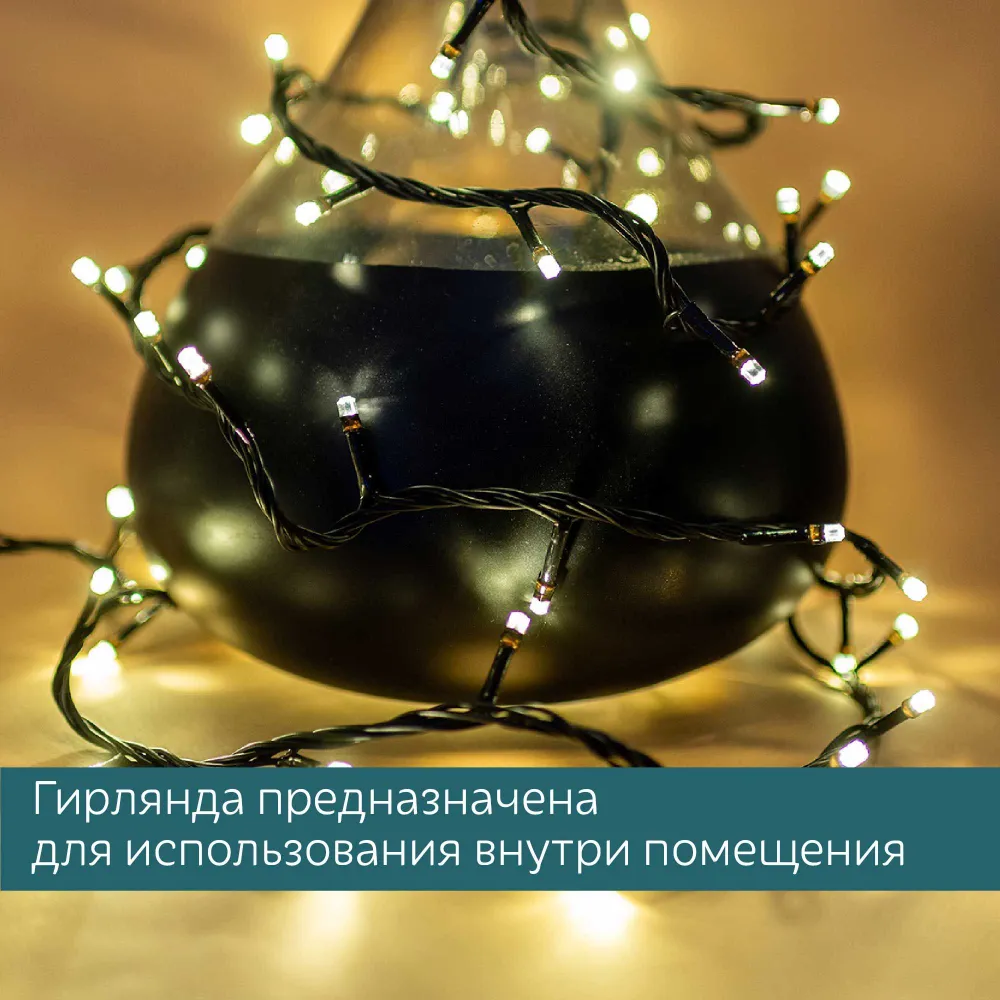 Электрогирлянда GLOS Нить Бриллианты GLR-SI0442-WW, 6 м, 120 ламп, теплый белый/черный провод информация: