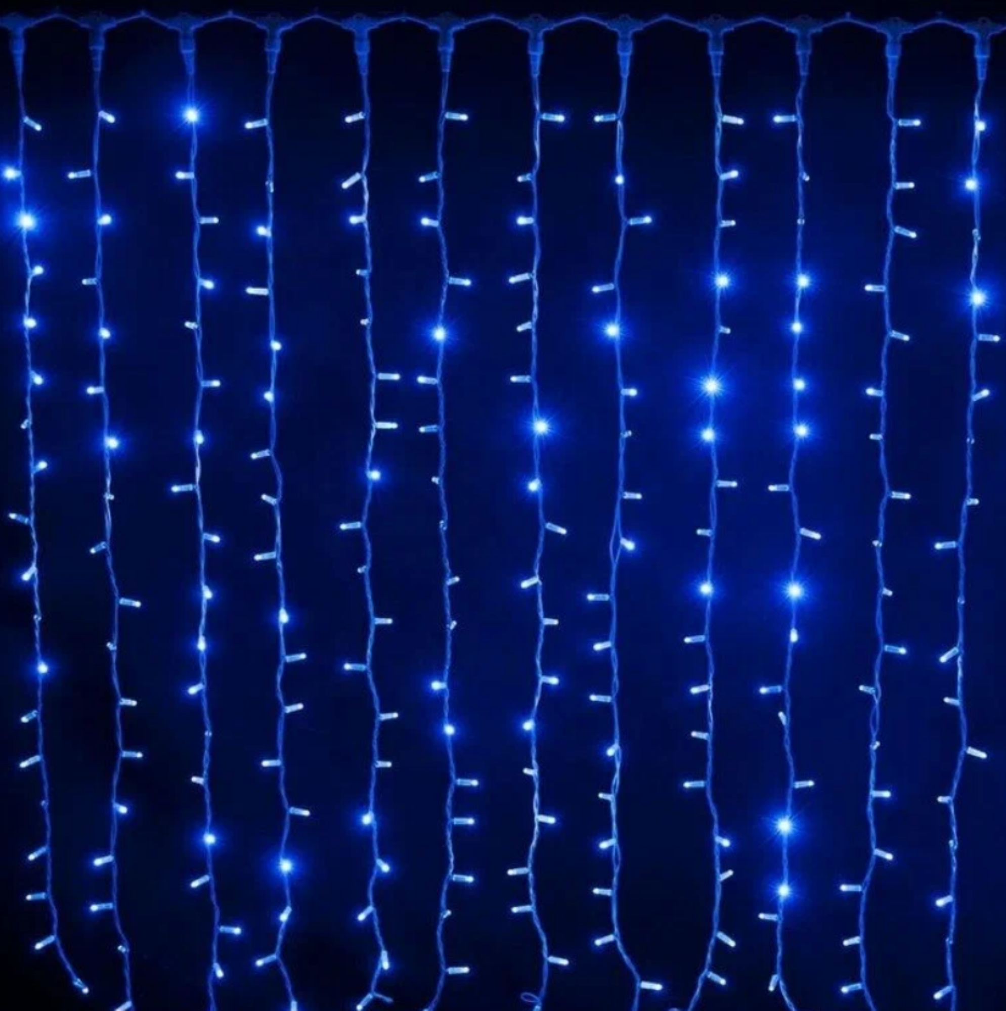 Гирлянда дождик 3 х 2 метра / Новогодняя штора / Занавес на окно / Гирлянда занавес / Гирлянда штора цвет: Синий 550 ₽