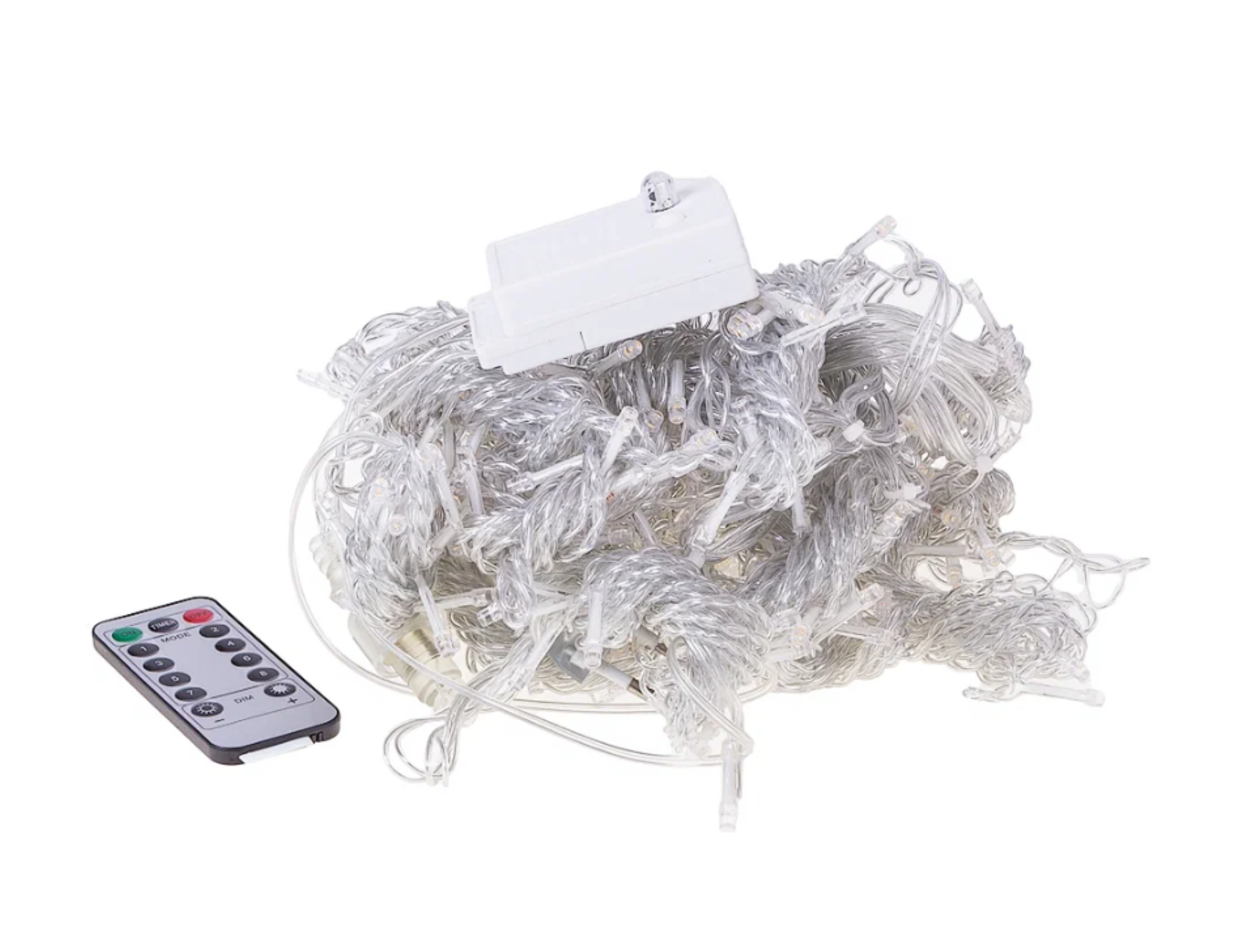 Гирлянда светодиодная - Занавес/штора, 560 LED, белый, прозрачный провод (3.0 м х 3.0 м), соединяемая, с пультом ДУ информация: