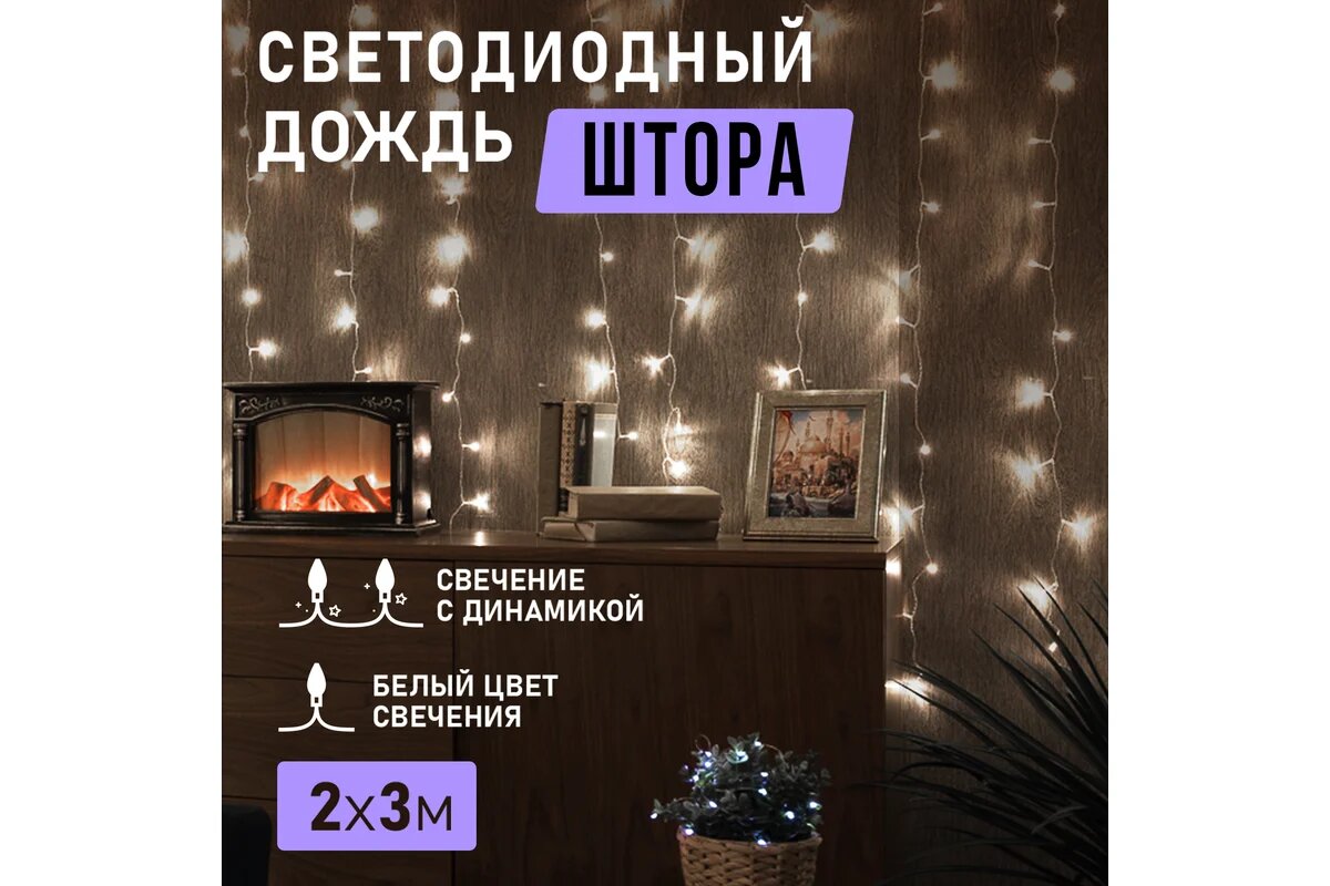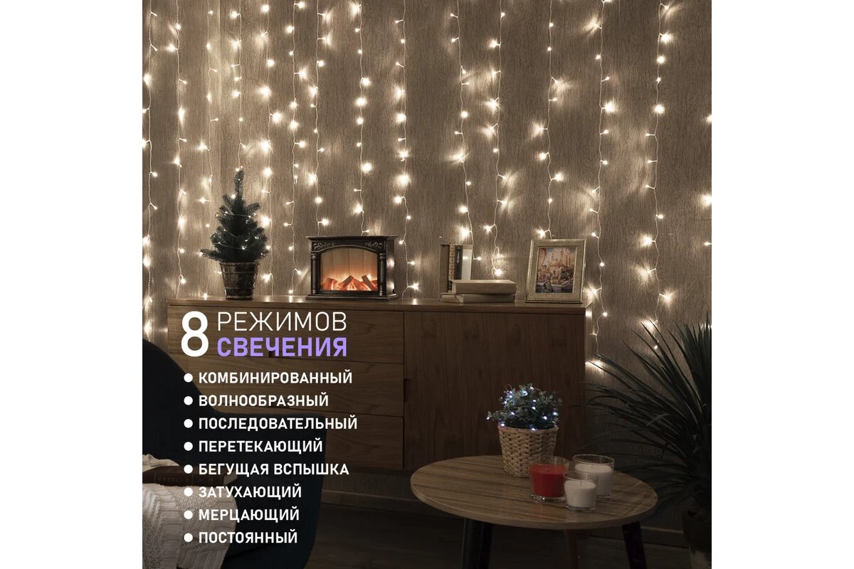 Светодиодная гирлянда NEON-NIGHT Дождь 8 режимов 2х3м 240 LED, прозрачный провод, белый 235-065 информация: