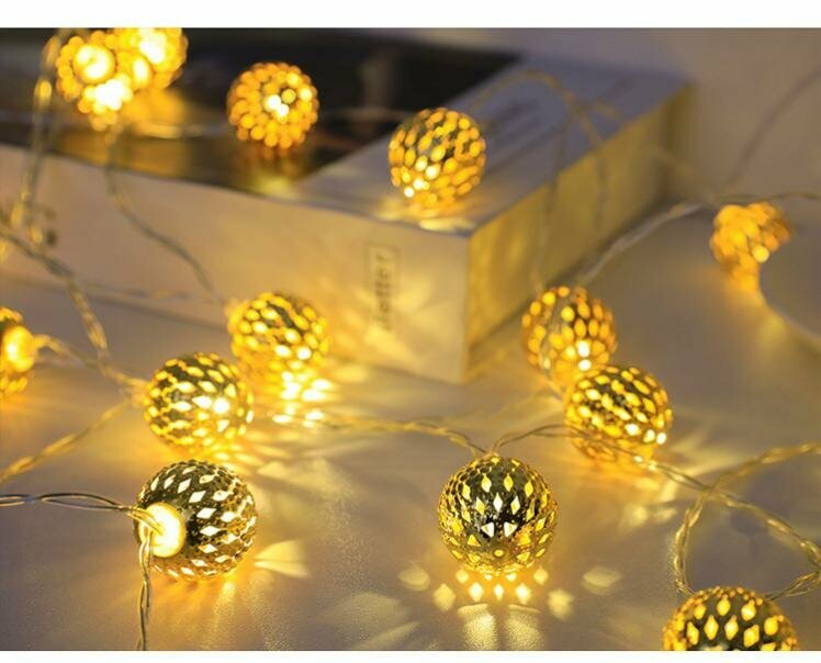 10 цен на Новогодняя светодиодная гирлянда "Ажурные шары-золото", 3 метра / золотое свечение