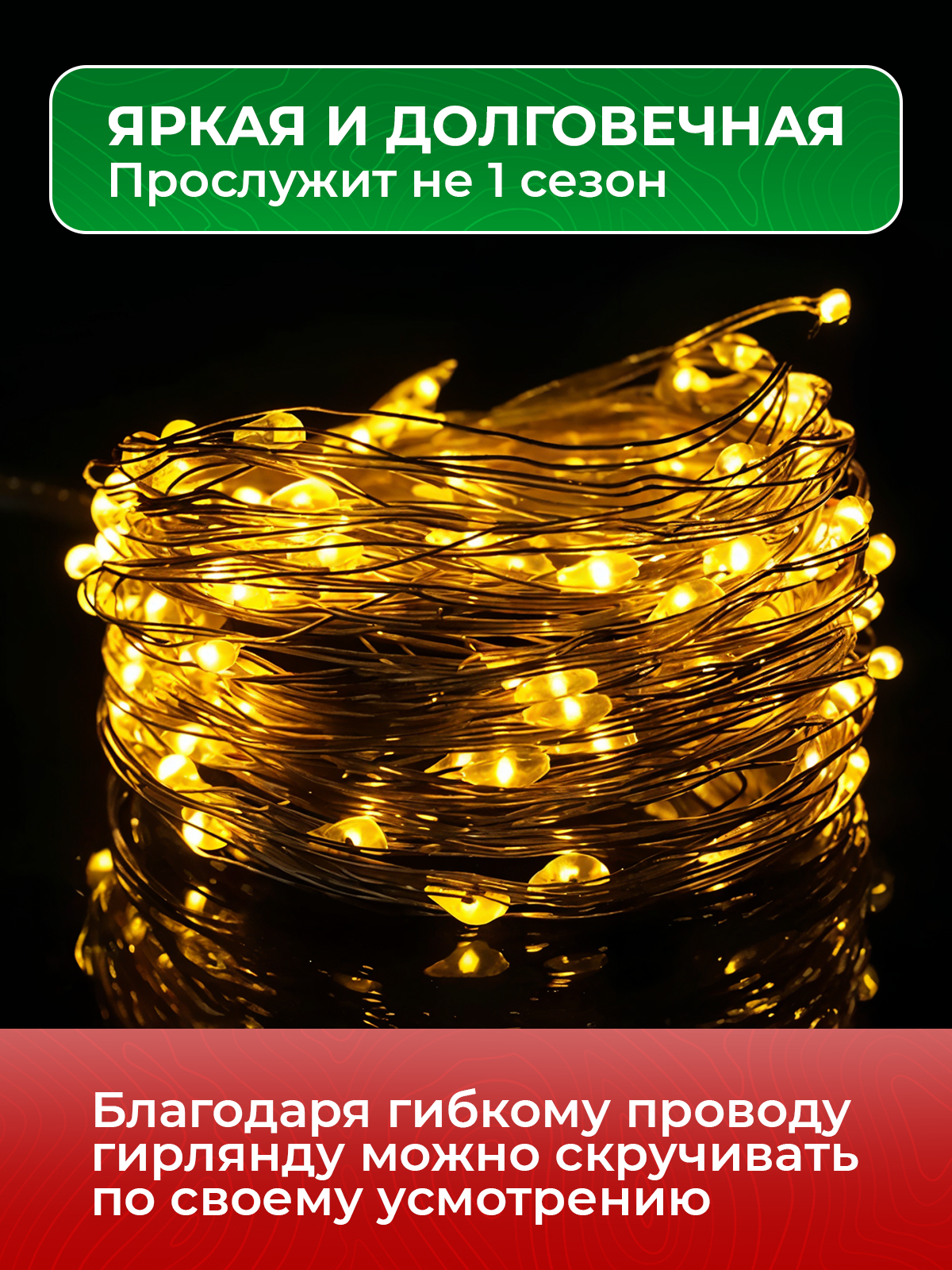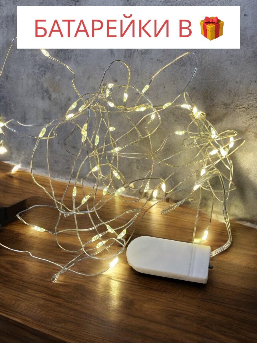 Гирлянда Роса 10м, питание от батареек АА, светодиодная