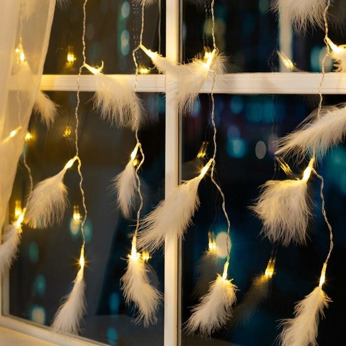 Отзывы на Гирлянда «Занавес» 3 × 1.4 м с насадками «Перья», IP20, прозрачная нить, 80 LED, свечение тёплое белое, 8 режимов, 220 В