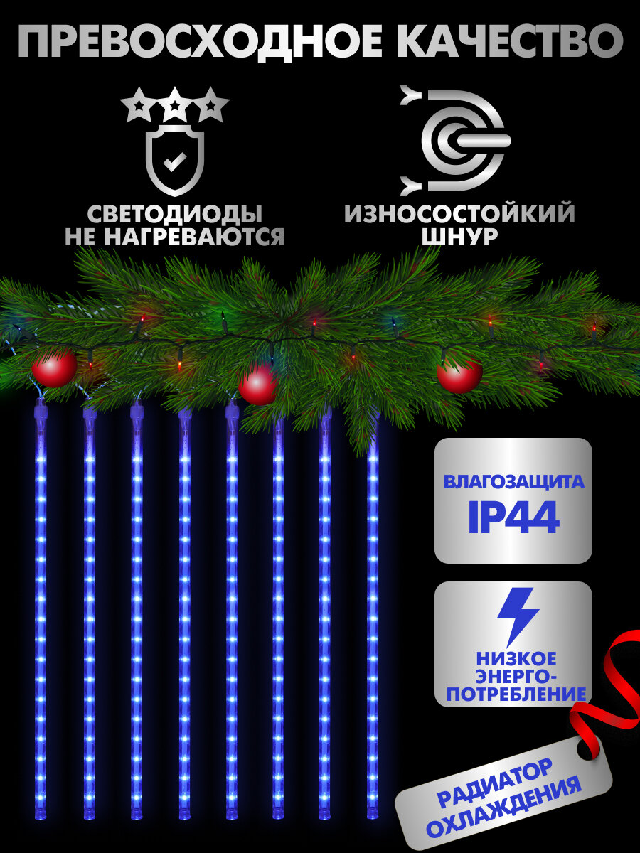 MiLED Гирлянда с насадками "Метеоритный дождь" 8шт. 50см, синий свет, 220В, 3м работает от сети. Артикул ГН-0020 информация: