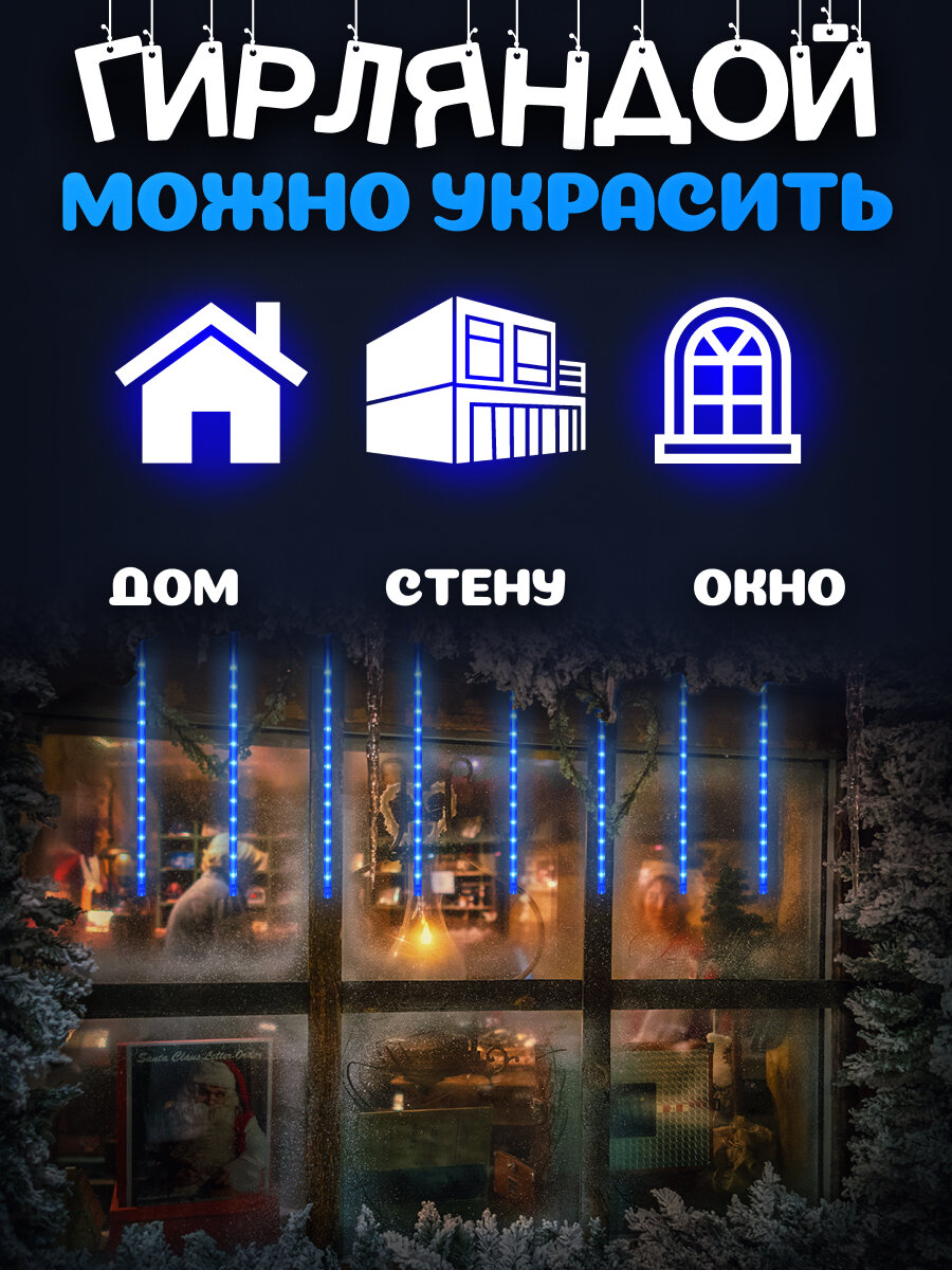 10 цен на MiLED Гирлянда с насадками "Метеоритный дождь" 8шт. 30см, синий цвет, 220В, 3м работает от сети. Артикул ГН-0016