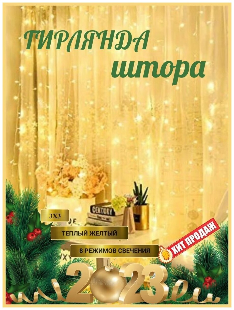 10 цен на Гирлянда "Занавес", 3x3 м, 190 LED, жёлтая, плавная смена света, питание от сети