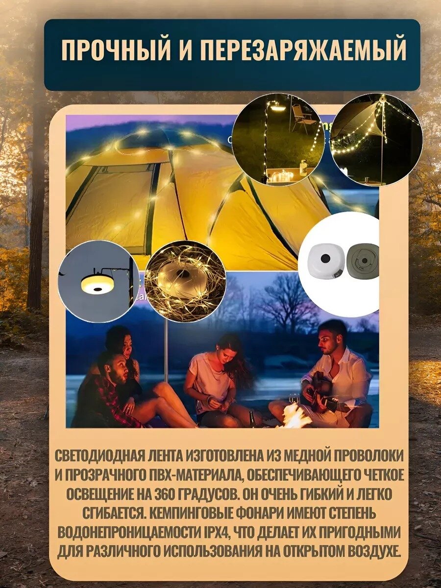 Гирлянда на батарейках садовая уличная, для кемпинга, кемпинговая информация: