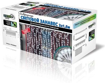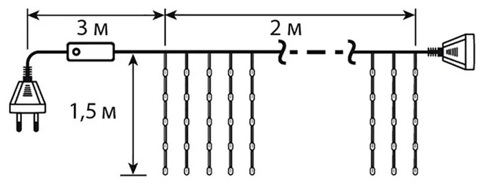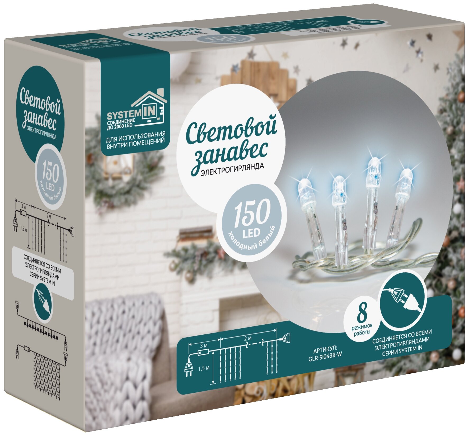 10 цен на Электрогирлянда GLOS Занавес GLR-SI0438-W, 2 х 1.5 х 2 м, 2 х 1.5 м, 150 ламп, холодный белый/прозрачный провод