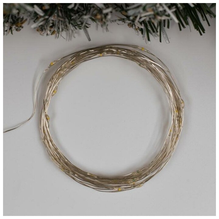 Гирлянда «Нить» 5 м роса, IP20, серебристая нить, 50 LED, свечение тёплое белое, CR2032х2, 2433894 информация: