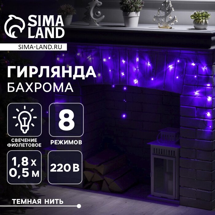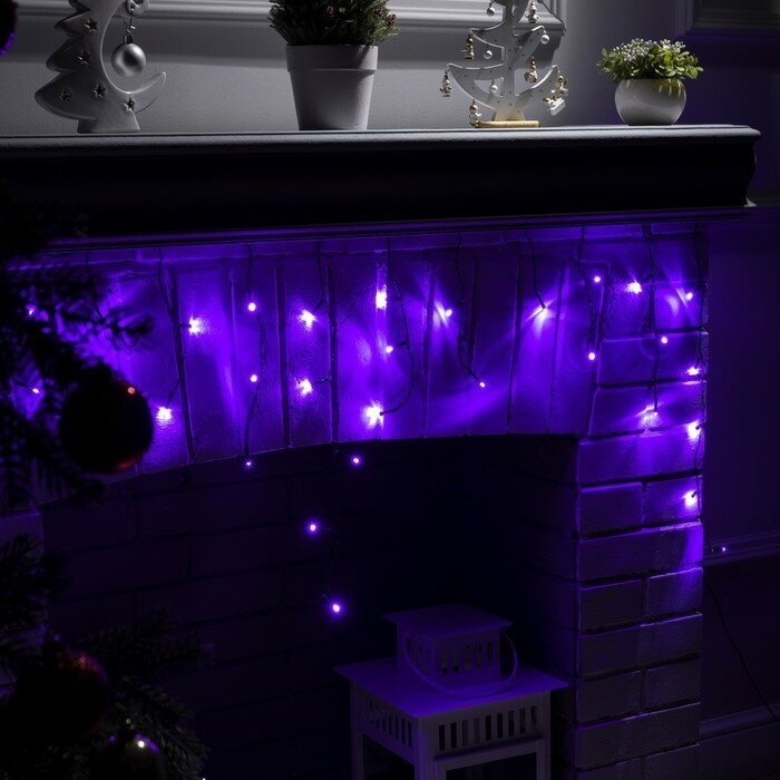 Гирлянда «Бахрома» 1.8 × 0.5 м, IP20, тёмная нить, 48 LED, свечение фиолетовое, 8 режимов, 220 В информация: