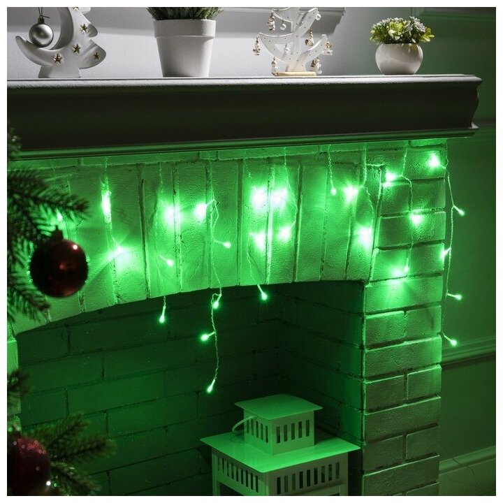 10 цен на Гирлянда «Бахрома» 1.8 × 0.5 м, IP20, прозрачная нить, 48 LED, свечение зелёное, 8 режимов, 220 В