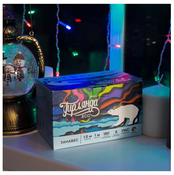 Отзывы на Гирлянда «Занавес» 1.5 × 1 м, IP20, прозрачная нить, 180 LED, свечение мульти, 8 режимов, 220 В