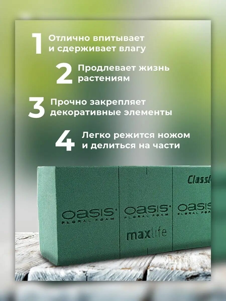 Отзывы на Губка флористическая Оазис Классик кирпич из пены для живых, сухих и искусственных цветов, зеленая, 23х11х8 см