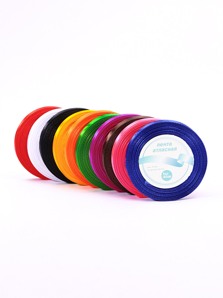 Набор атласных лент упаковочная для подарков, шитья и рукоделия 12мм Микс1 Magic4Hobby 10шт*22,5м (±1м) информация: