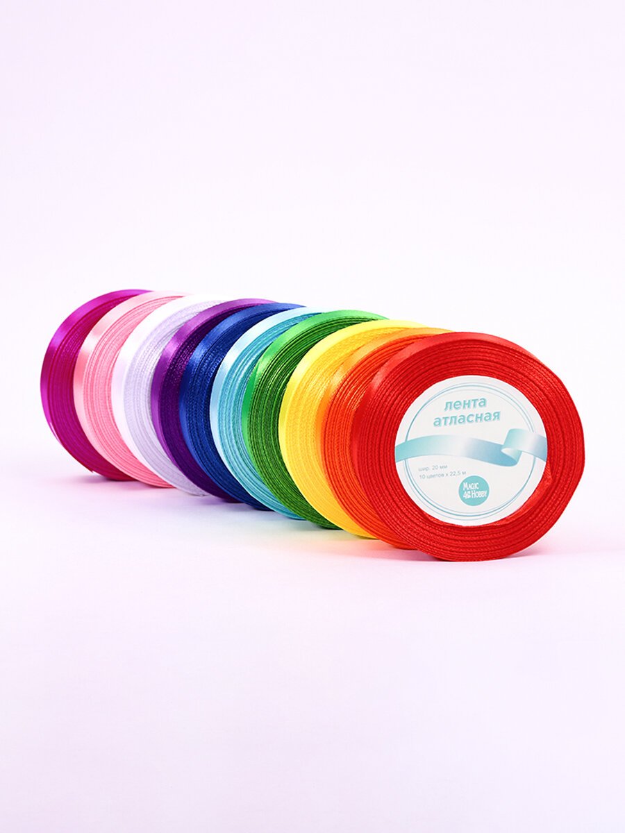 Набор атласных лент упаковочная для подарков, шитья и рукоделия 20мм Радужный2 Magic4Hobby 10шт*22,5м (±1м) информация:
