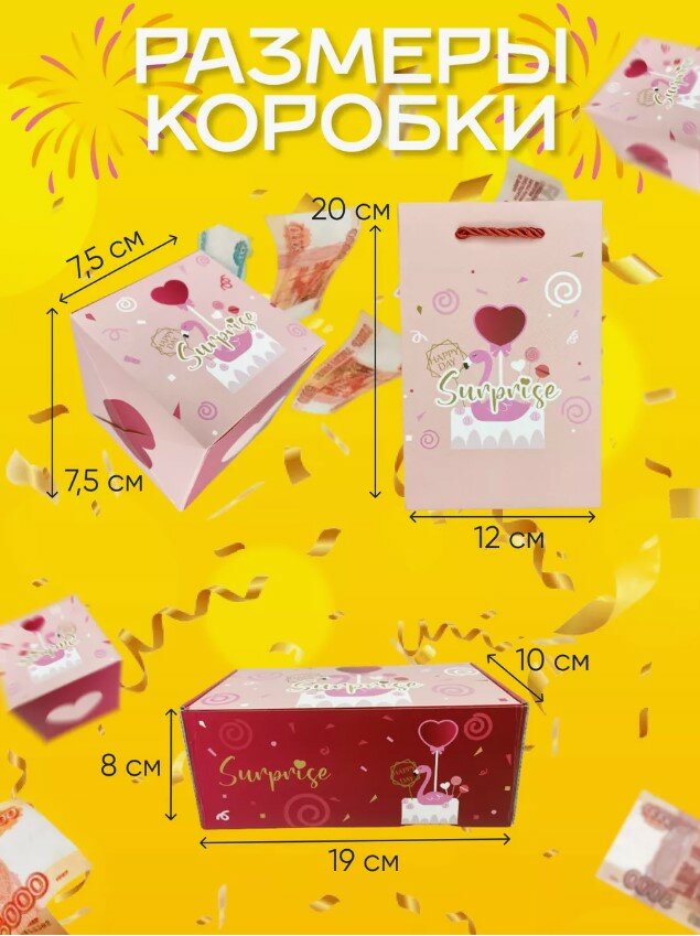 Бум Коробка складная Сюрприз подарочная розовая, фламинго, 12 кубиков информация: