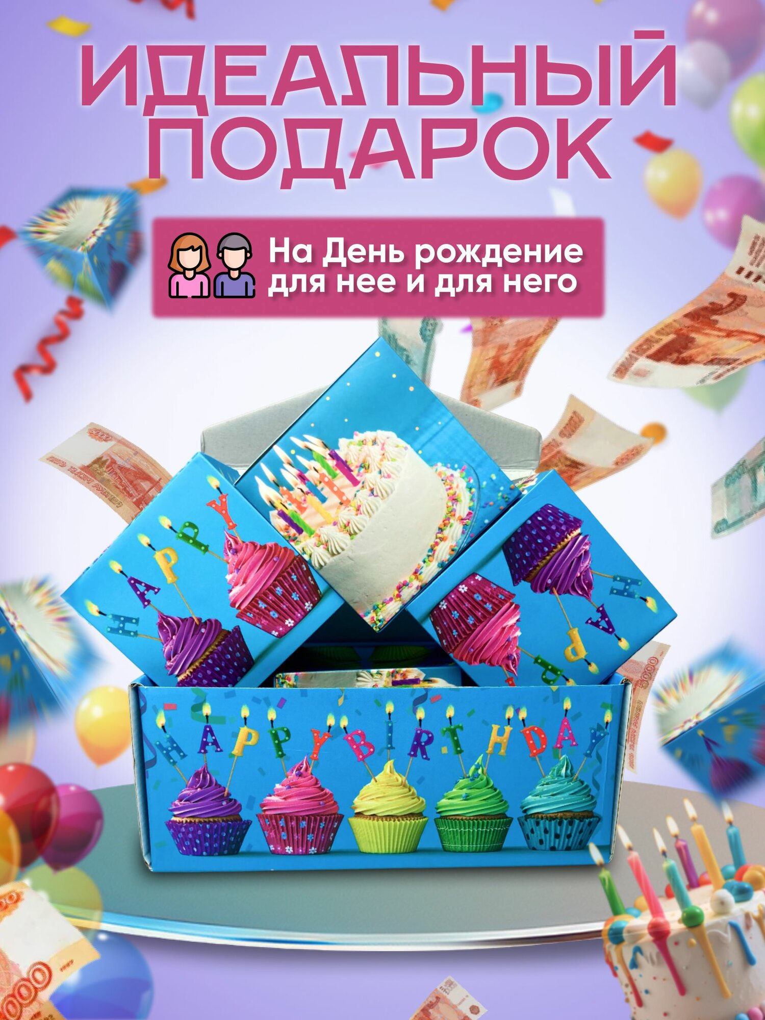 Коробка подарочная Бум, конверт для денег/Оригинальное поздравление на свадьбу, день рождения лиловая,12 кубиков 875 ₽
