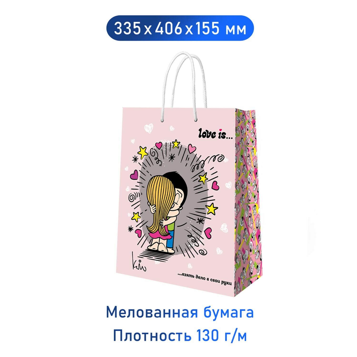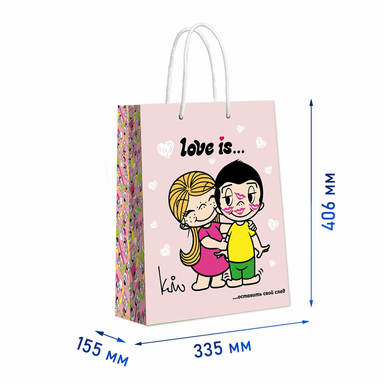 Пакет подарочный большой Love is нежно-розовый, 335 х 406 х 155 мм, ND Play информация: