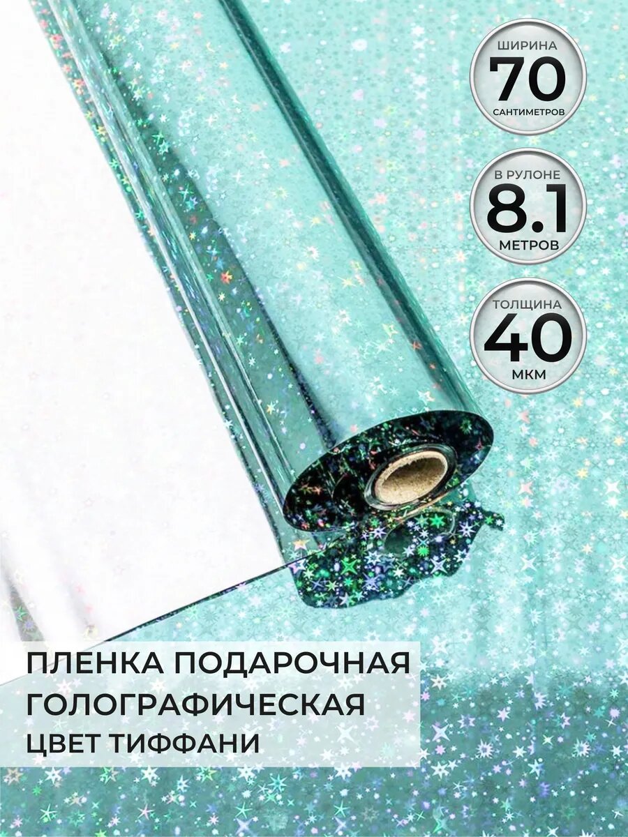 Упаковочная бумага для подарков и цветов от бренда Типография "ТМТ", в рулоне 0,7 х8,1м, голография, цвет Тиффани информация:
