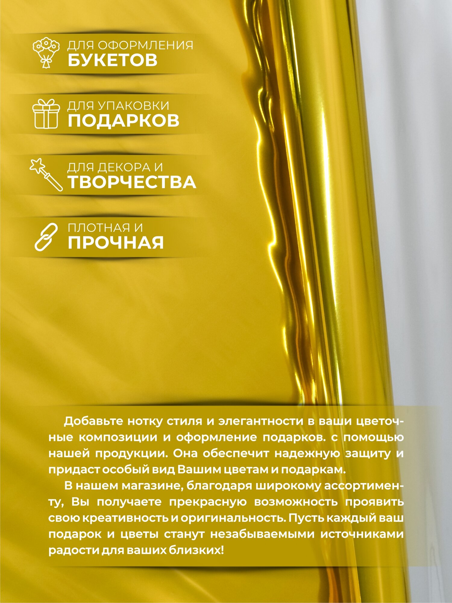 Отзывы на Упаковочная бумага для подарков и цветов от бренда Типография "ТМТ", в рулоне 0,7 х7,2м, металлик, цвет золотой