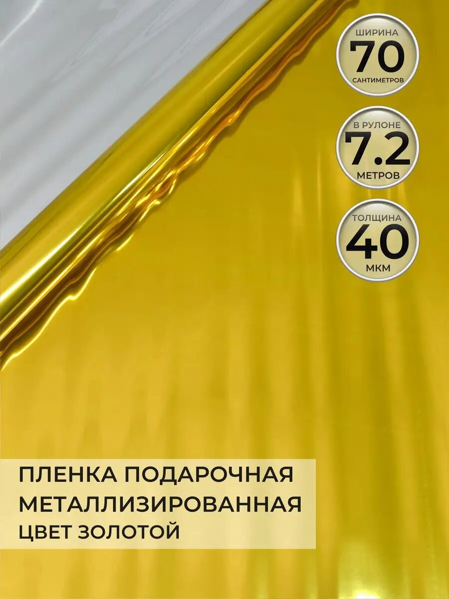 Упаковочная бумага для подарков и цветов от бренда Типография "ТМТ", в рулоне 0,7 х7,2м, металлик, цвет золотой информация:
