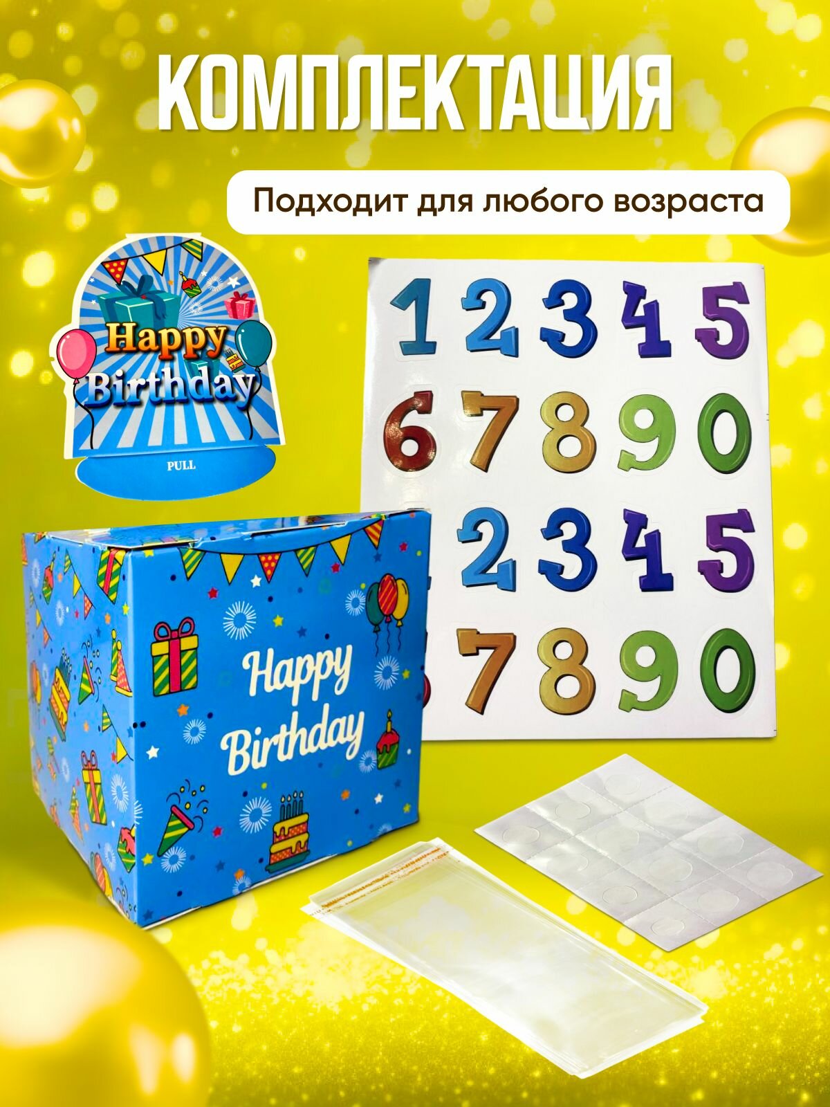 Подарочная коробка сюрприз с ВАУ-эффектом, с днем рождения, синяя 644 ₽