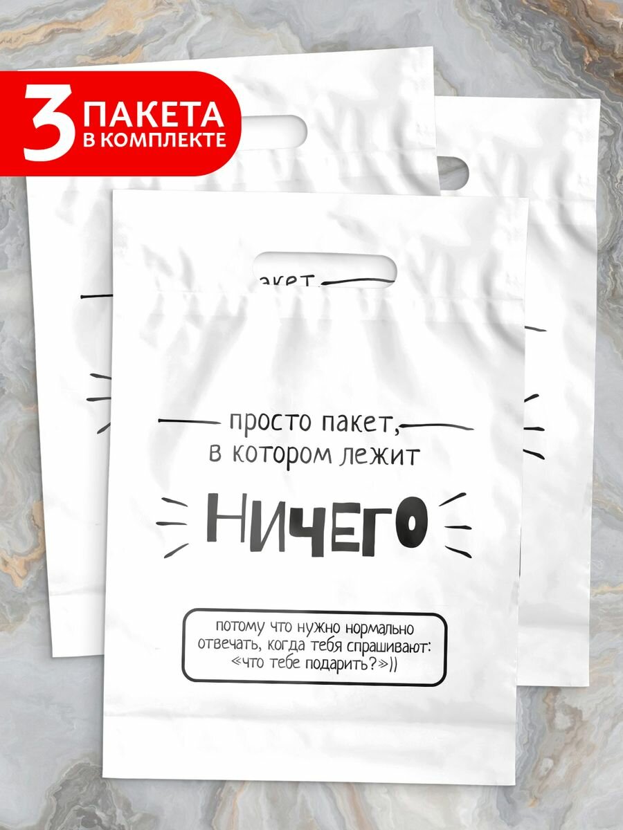 Про100 Подари, Подарочный пакет «Ничего», набор из 3 штук информация: