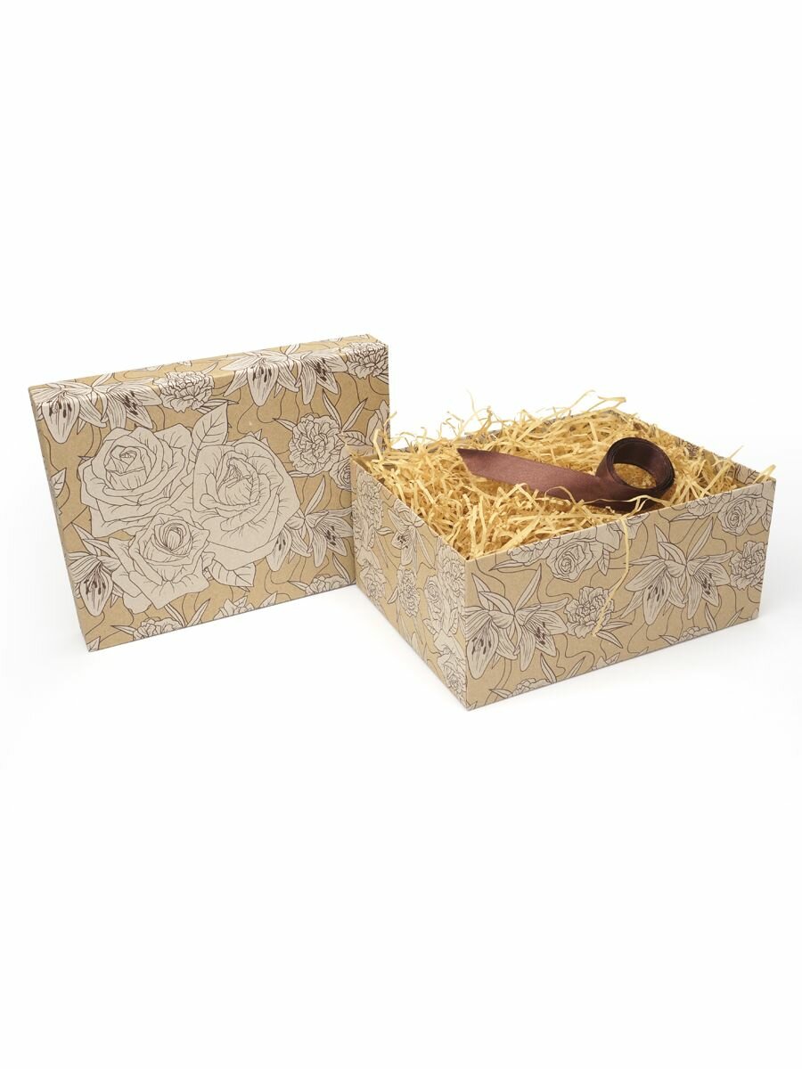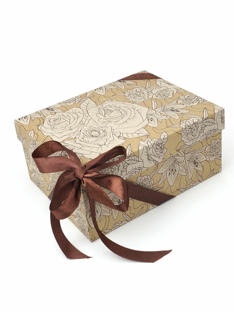 10 цен на Подарочная коробка 22х17х10см, крафт коробка с наполнителем и атласной лентой, упаковка для подарка