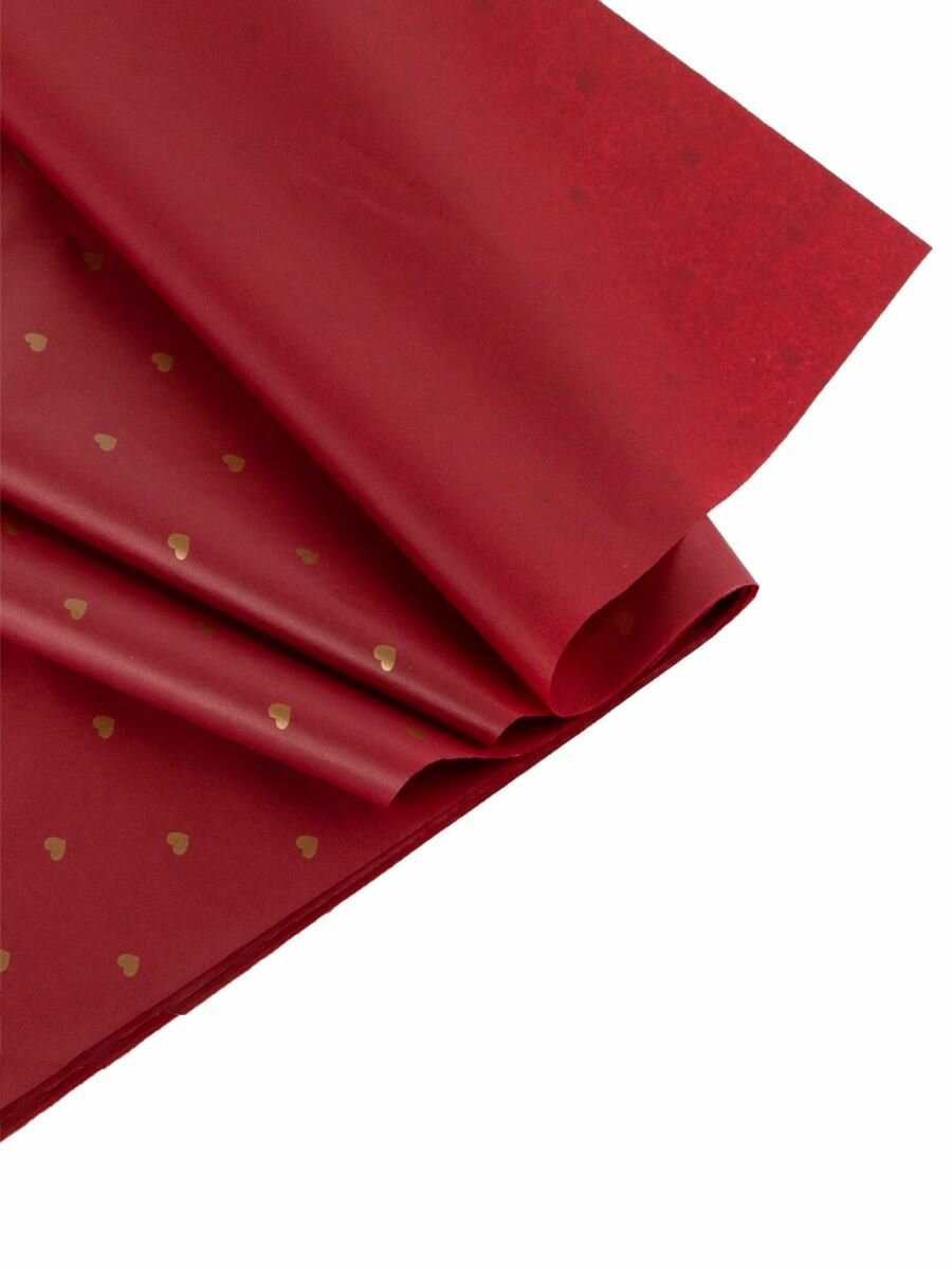 10 цен на Бумага упаковочная тишью "Золотые сердца" бордовая, 50х70см (5 листов)