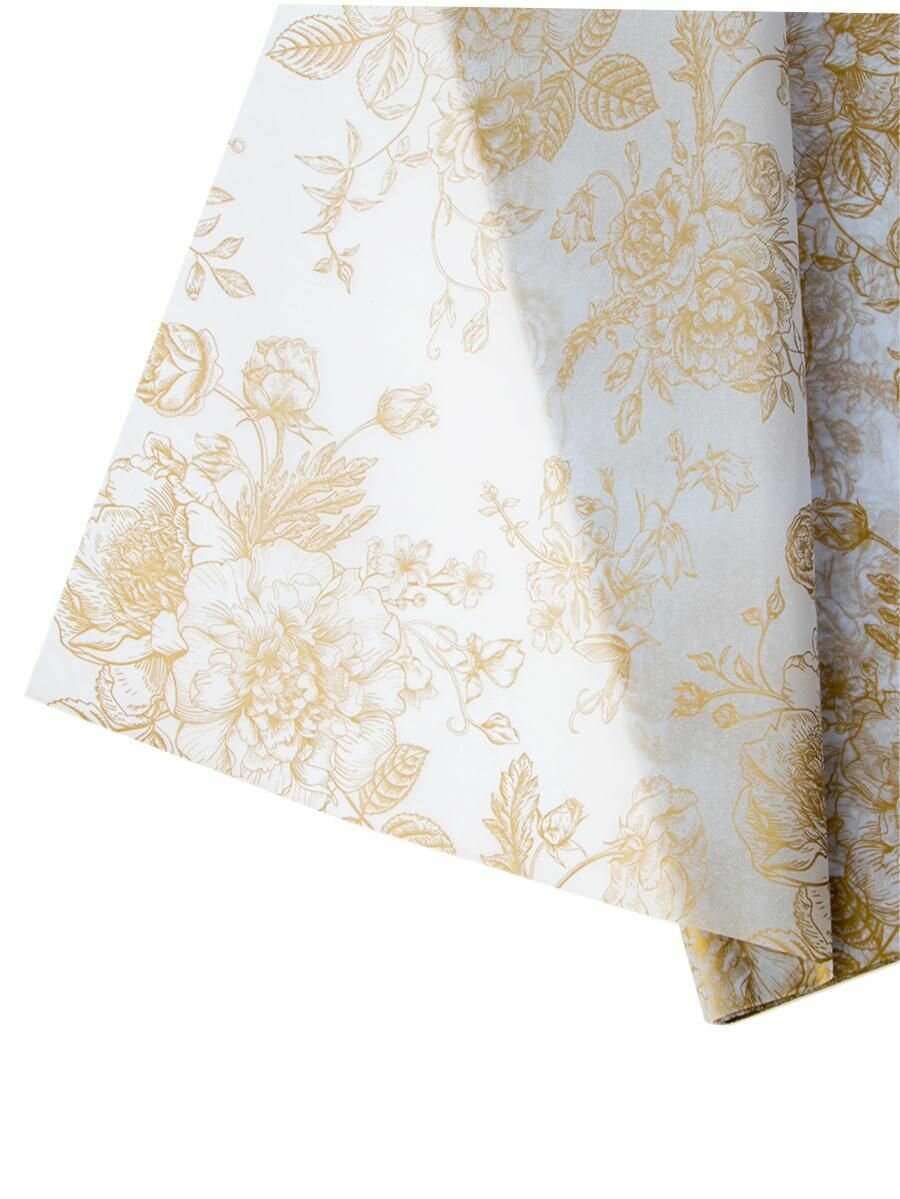 Бумага упаковочная тишью "Цветы" золотой, 50х70см (5 листов) информация: