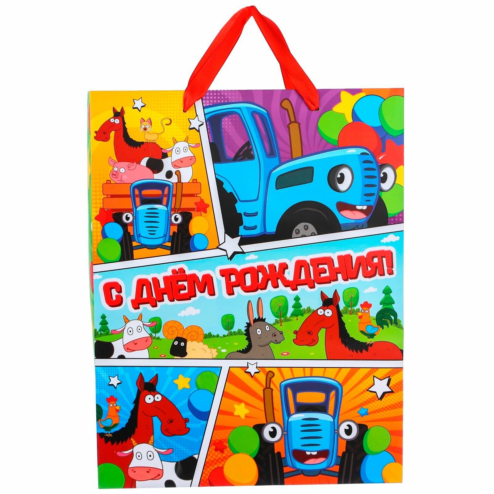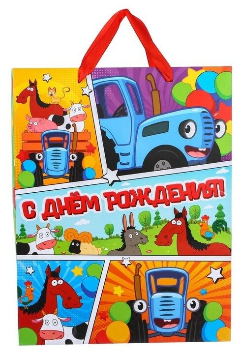 Отзывы на Пакет подарочный Синий Трактор, С Днем рождения, зеленый, 31х40х11,5 см
