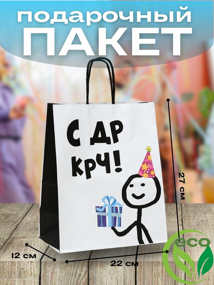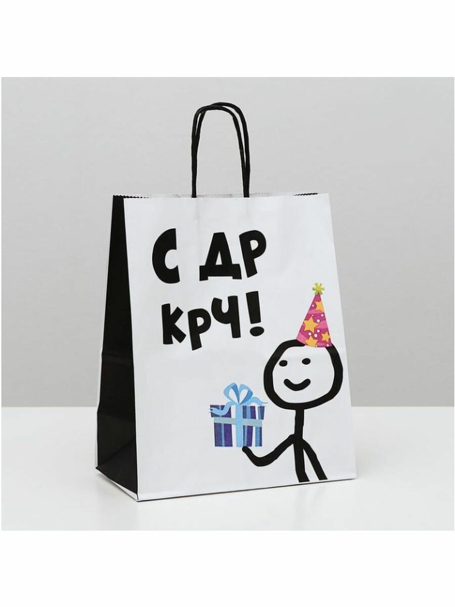 Отзывы на Подарочный пакет "С днём рождения", крафт-бумага, 28х24х14 см, белый