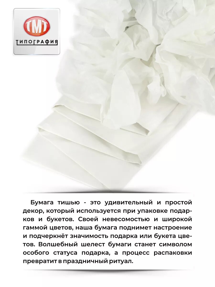 Упаковочная бумага тишью от бренда Типография "ТМТ", 50х66см, набор 50 листов, цвет белый 607 ₽