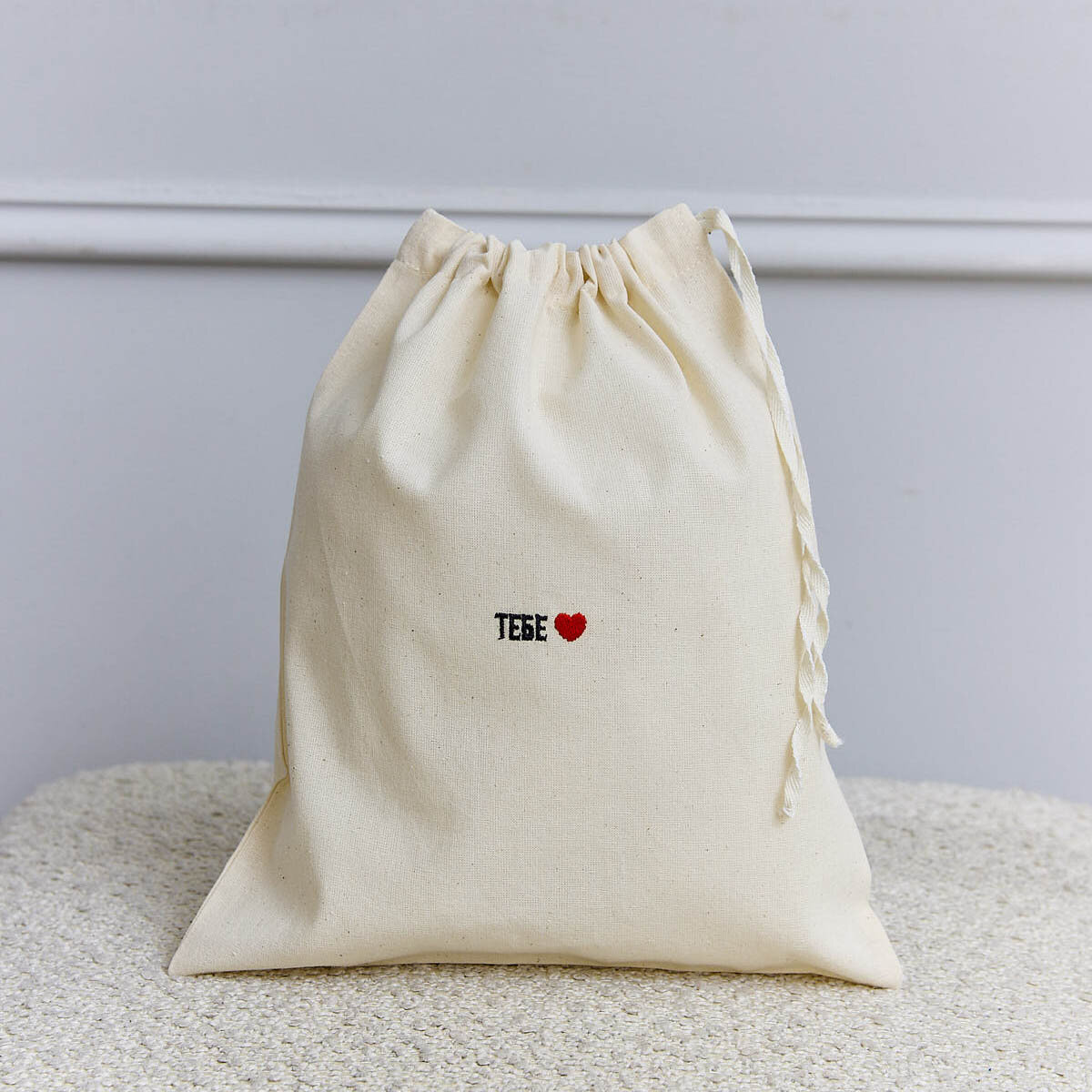 Мешок подарочный Берегите птиц с вышивкой "С любовью", хлопок, 100%, бежевый, 31x26 см 451 ₽